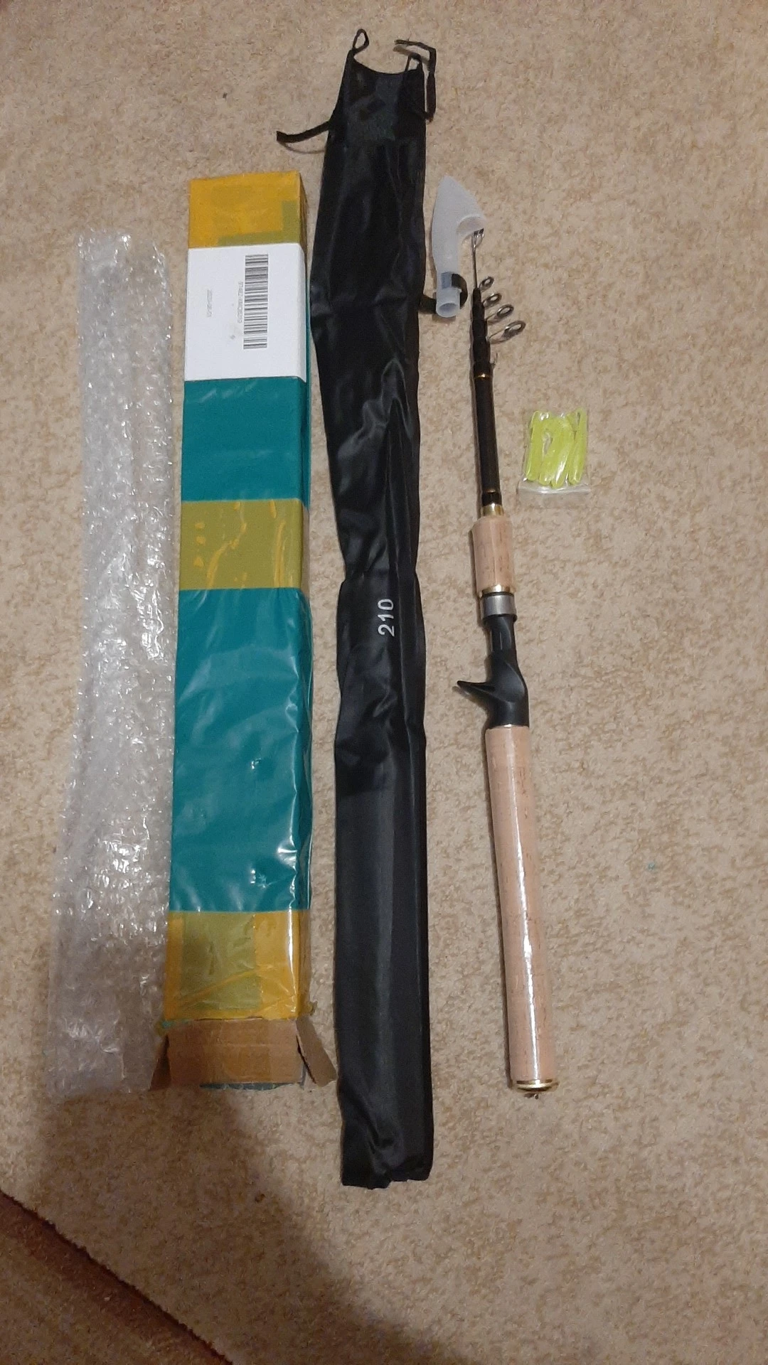 Очень легкий спининг не знаю как я буду тащить на него щуку но надеюсь он выдержит,принес курьер, отправка и доставка не заставили себя долго ждать, но конечно же дороговато с отправкой из Китая такая удочка будет немного дешевле, продавец положил пару виброхвостов на окуня в подарок за это отдельная ему благодарность)