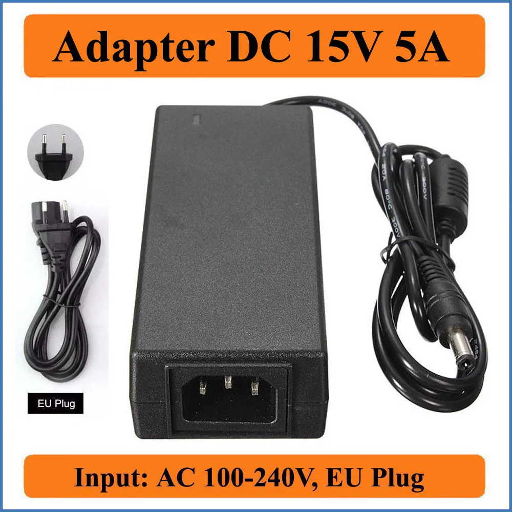 15 в 5А, штепсельная вилка европейского стандарта, адаптер переменного тока постоянного тока, 1 шт., адекватный AC100V-240V питания, преобразователи в постоянный ток 15В 5000ма, зарядное устройство, 5,5 мм, x2.1-2,5 мм