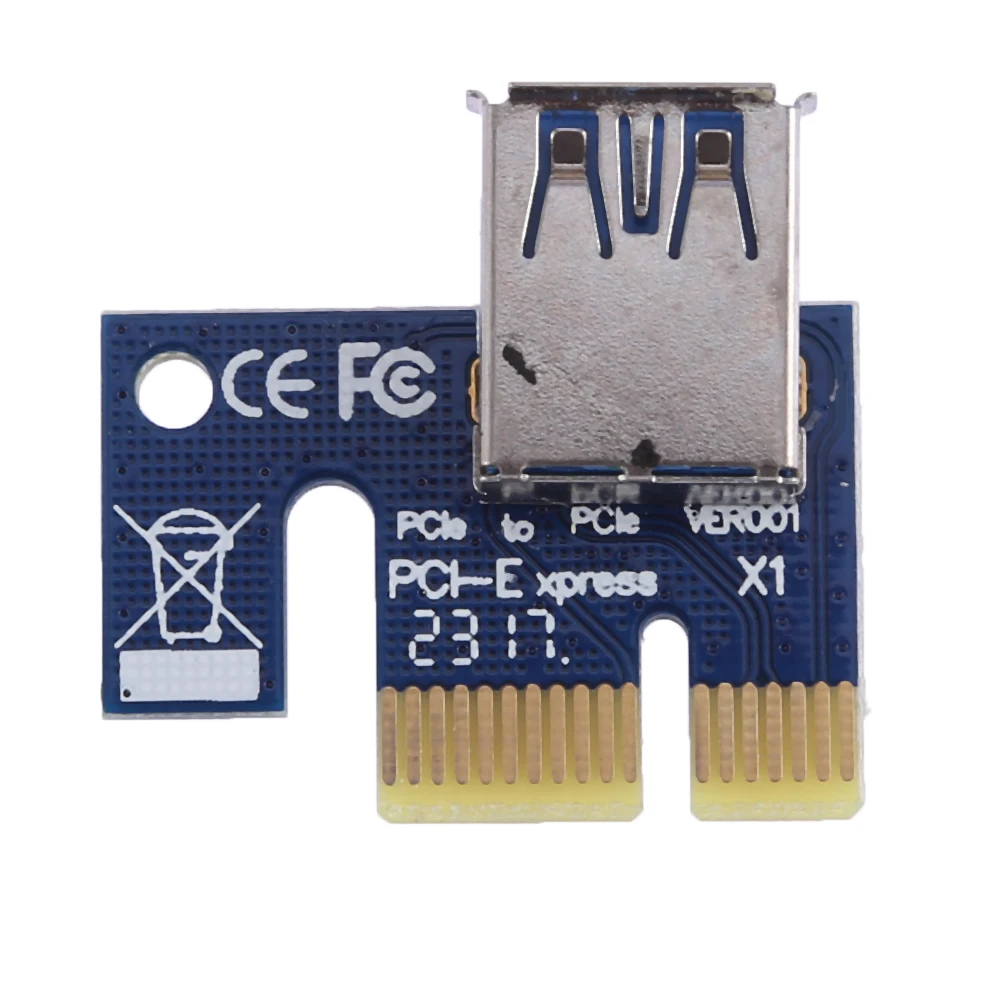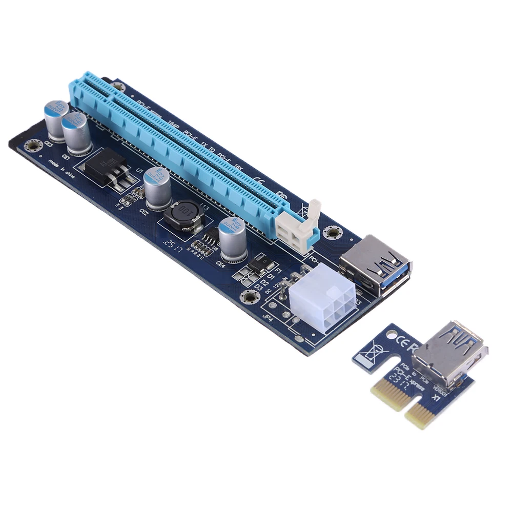 Только карта 6pin PCI-E USB3.0 1x to 16x расширитель Райзер-карта для майнинга BTCНовая версия 2017, 6-контактный источник питания, безопасный и стабильный! Для майнинга биткоиновХарактеристики:Название продукта: USB 3,0 PCI-E 1X на 16X адаптер Райзер для карт памяти (4 емкости)Интерфейс: PCI-E 16X, USB3.0, 6-контактный разъемРазмер игрушки: 127X44X15 ммВес нетто: около 44 гЦвет: как на фотоОсобенности:1. С 4 твердыми конденсаторами, что делает Графический источник питания более стабильным и безопасным.2. С 6-контактным интерфейсом, более мощный и снижает нагрузку на материнскую плату.3. Изначально импортирован слот для видеокарты, что делает соединение с разъемом намного лучше.4. Есть фиксирующие пряжки в каждом слоте;5. Нет необходимости в водителе6. Специально разработан для майнинга биткоинов;Примечания:1. Вы должны выключить компьютер, когда вы подключаете или выключаете карту расширения PCI-E.