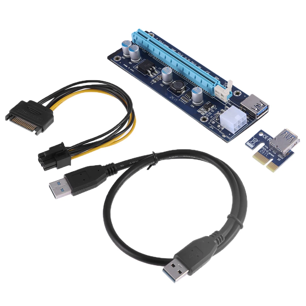 Переходник для биткоинов, удлинитель PCI-E USB 3,0 PCI-E Express 1x to16x, адаптер SATA 6Pin, кабель питания для майнинга биткоинов