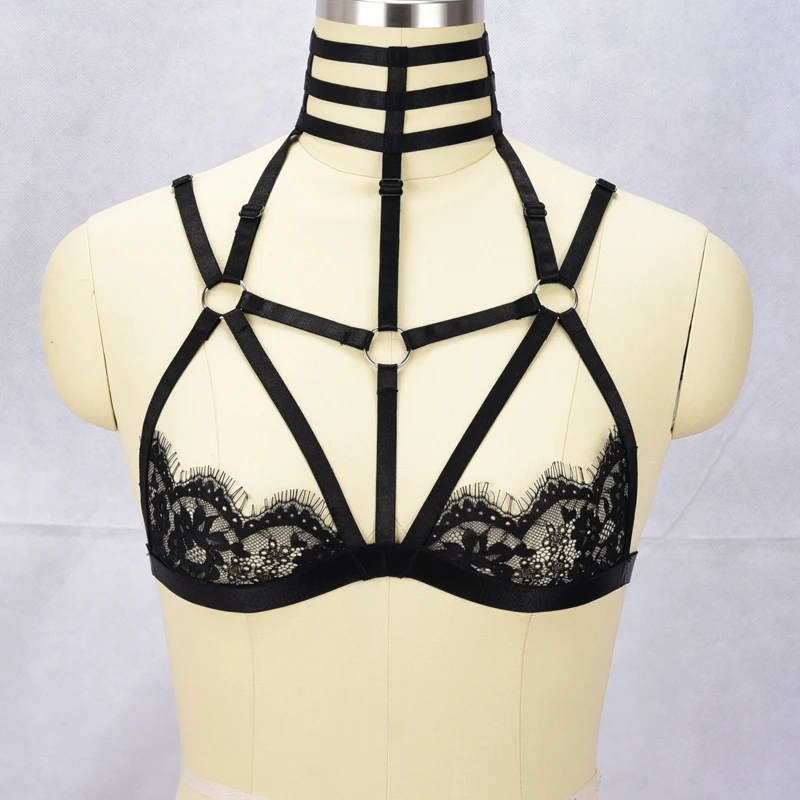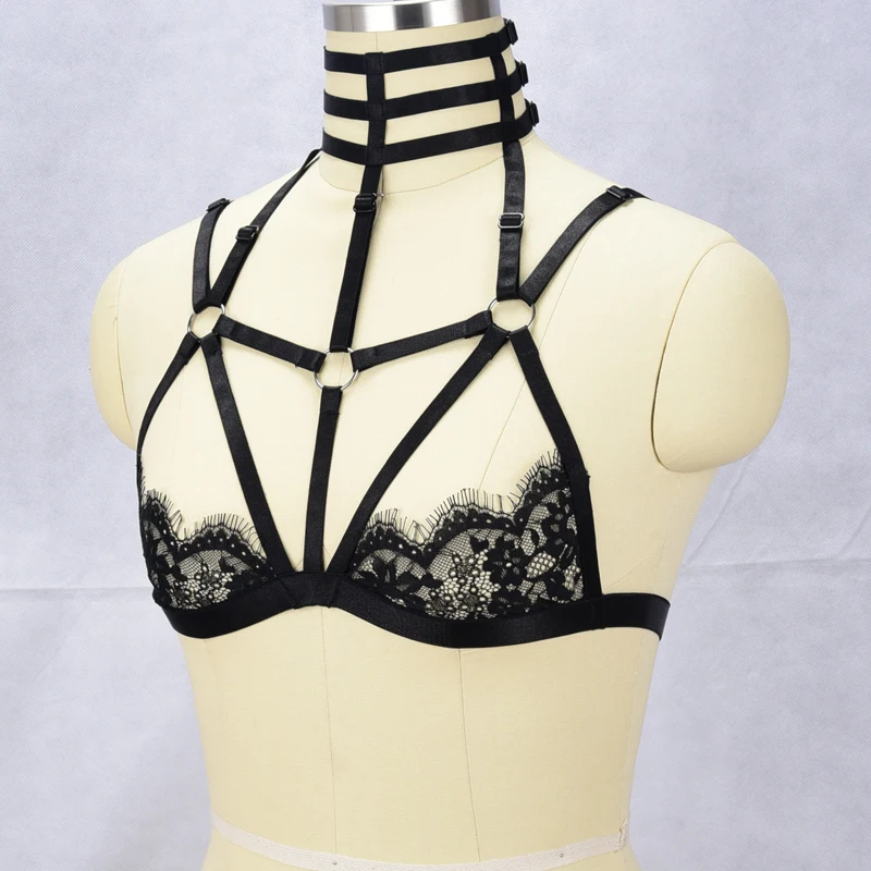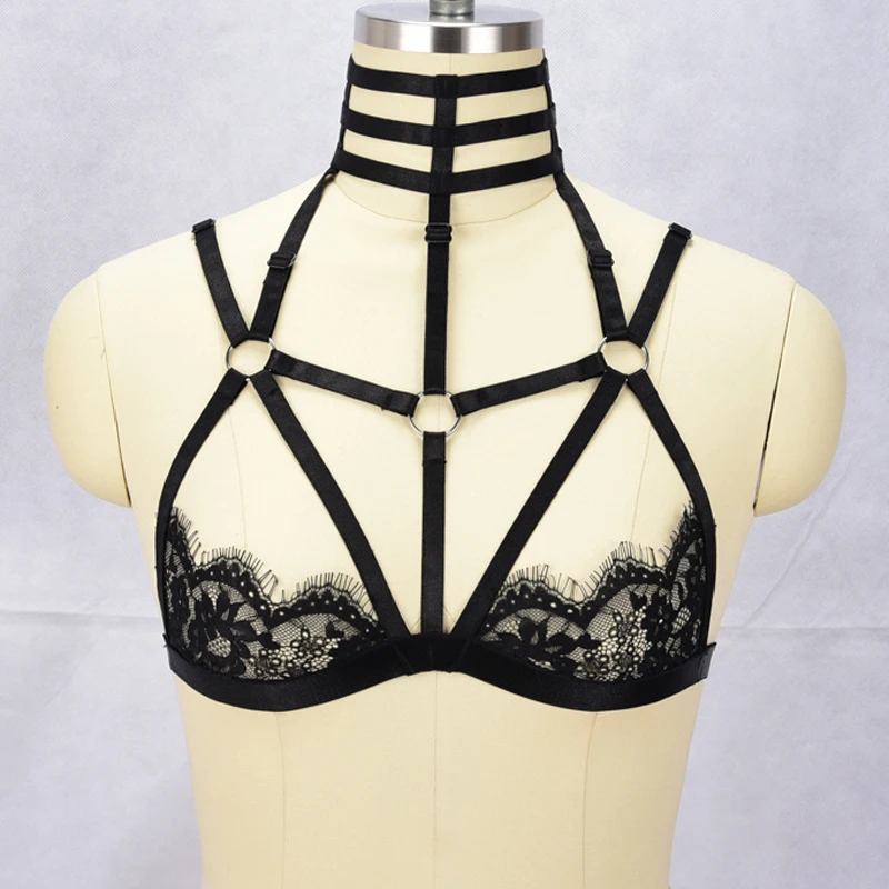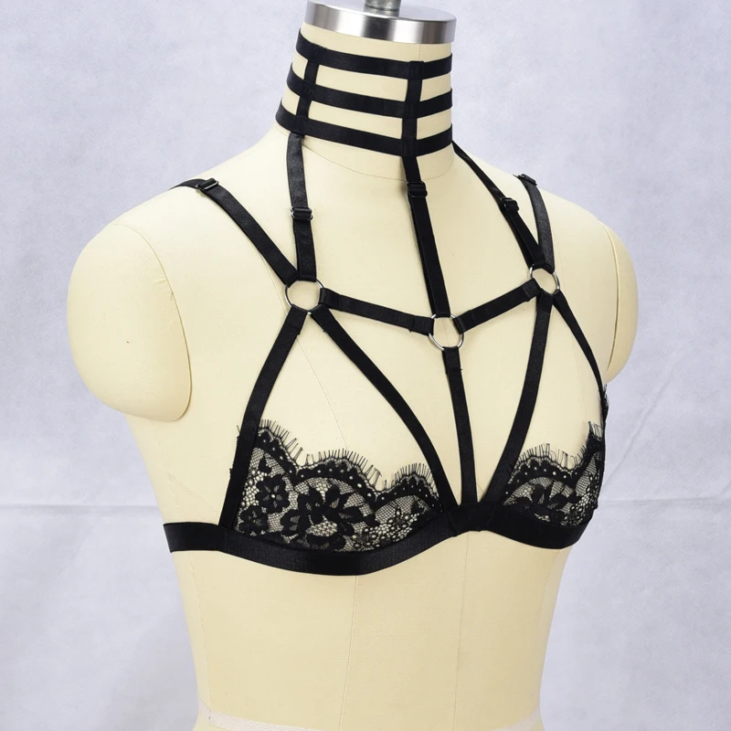 JLX. Жгут 90-х Черное кружево жгут кружево клетка бюстгальтер для тела жгут укороченный топ обвязка-каркас бюстгальтер Fetish Rave одежда Кружева ПНП бюстгальтер