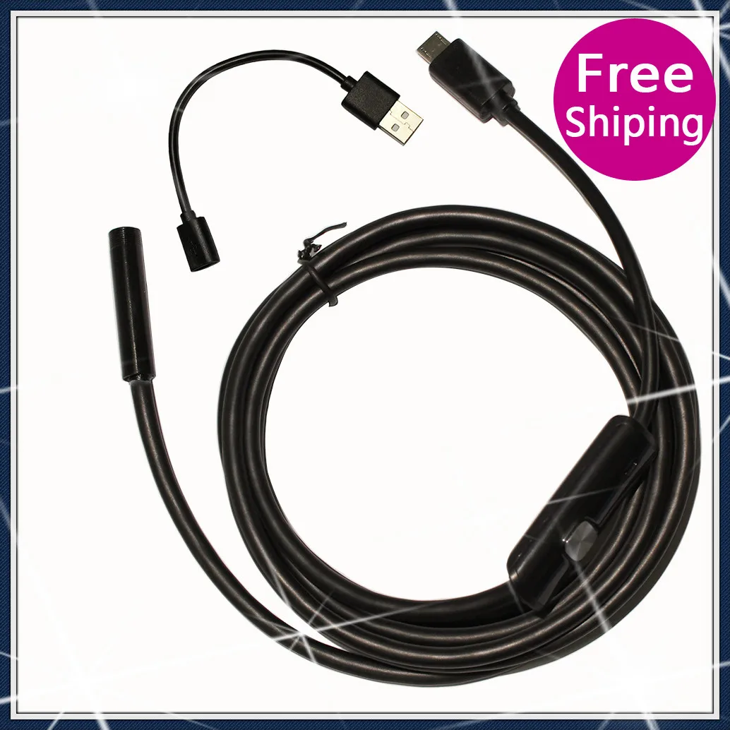 5,5 мм Len 6-ти Диодная лампа IP67 Водонепроницаемый Android OTG USB флэш накопитель Змея бороскоп, эндоскоп, камера, 1 м, 2 м, 3,5 м, 5 м Кабель для программирования в 2IN1 5 см до 720P камера
