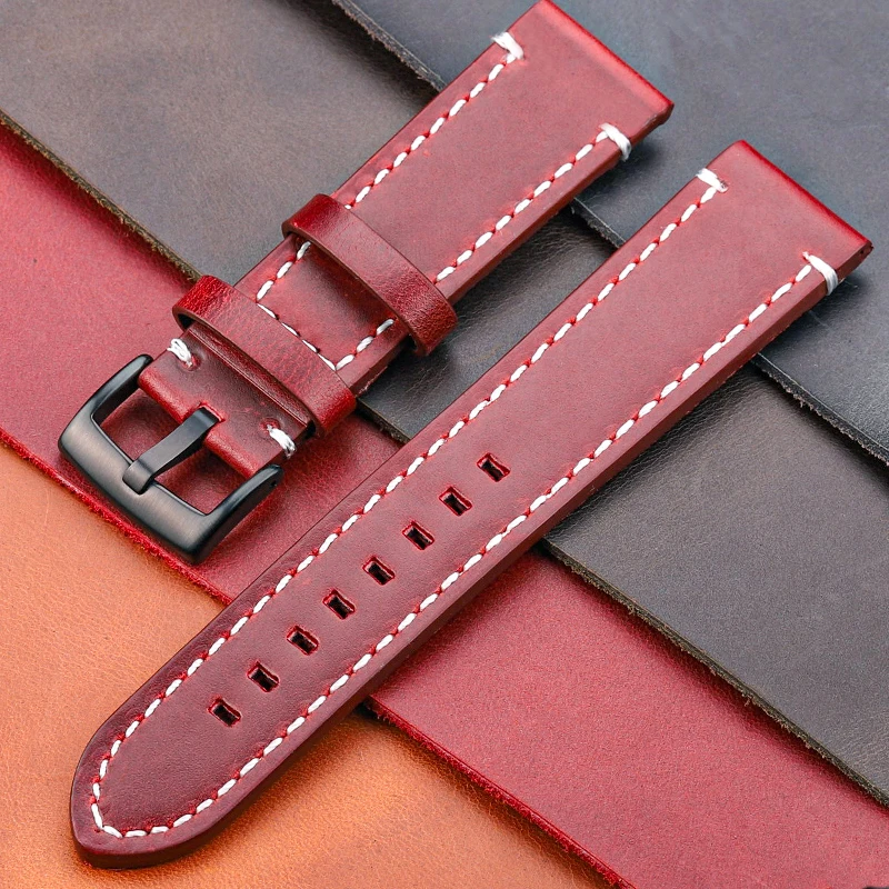 Ремешок HENGRC из воловьей кожи для наручных часов, Толстый коричневый черный браслет для часов, с пряжкой, 18 мм 20 мм 22 мм 24 мм