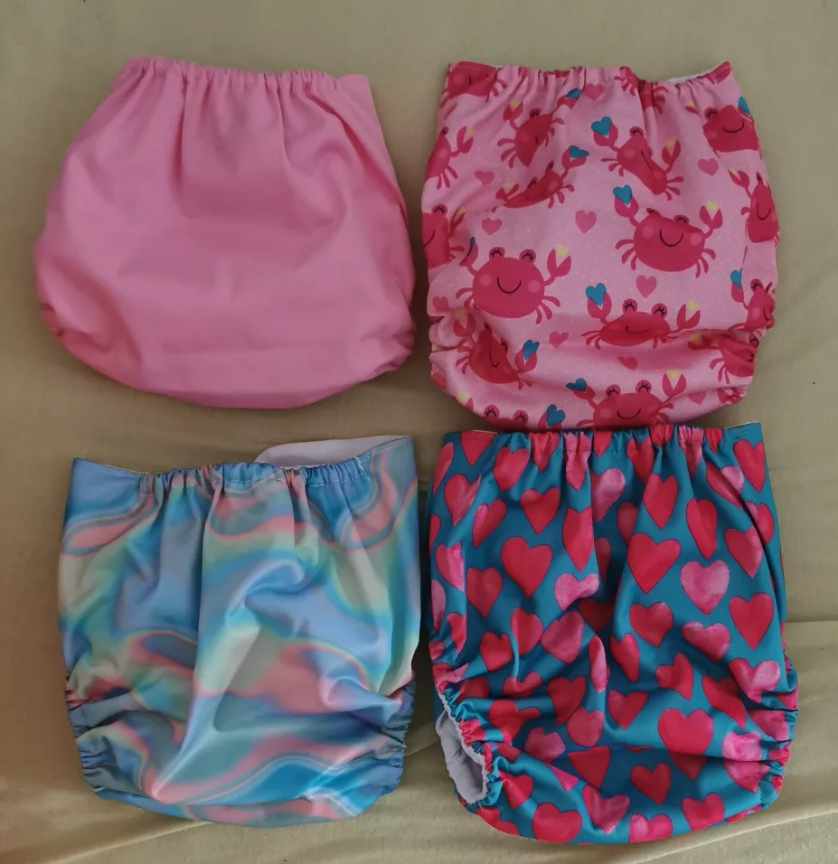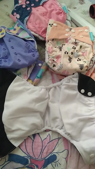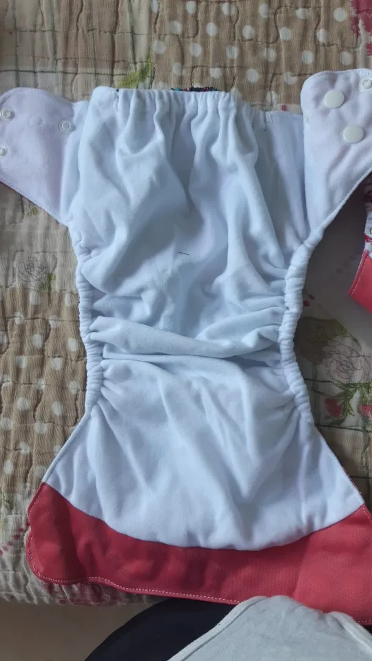 São fraldas maravilhosas que vestem super bem bebês com as coxas não tão grossas. O tecido do absorvente é delicado e o ajuste das fraldas fica super bom para p bebê. Amei !