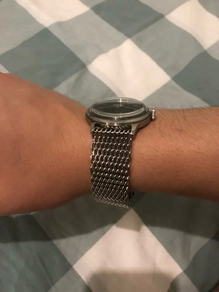 Отличный ремешок, пряжка немного в холле, но хорошо подходит для tha Точка цены t. Храните в мяте, что вы не можете вынуть звенья и адаптироваться к запястье, так что вам нужно будет разрезать его, и он может быть stle. Товар был доставлен быстро, и он был именно таким, как на картинке.
