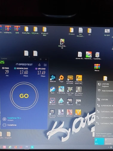 Продукт хорошего качества и производительности. Но bluetooth не работает на моем компьютере. Мне не удалось запускать все драйверы, даже если я правильно их установила. Qma wifi плавно. Он прибыл в мою страну через 1 неделю. На мой адрес из моей страны ушло две недели. В общей сложности в течение 3 недель продукт прибыл к моей руке я заплатил 18 фунтов налога. Я ставлю скорость и скорость продукта, который я сделал с кабелем на фотографиях. Если вы что-то знаете о bluetooth, я бы хотел воспользоваться этим. Дилер был очень интересен.