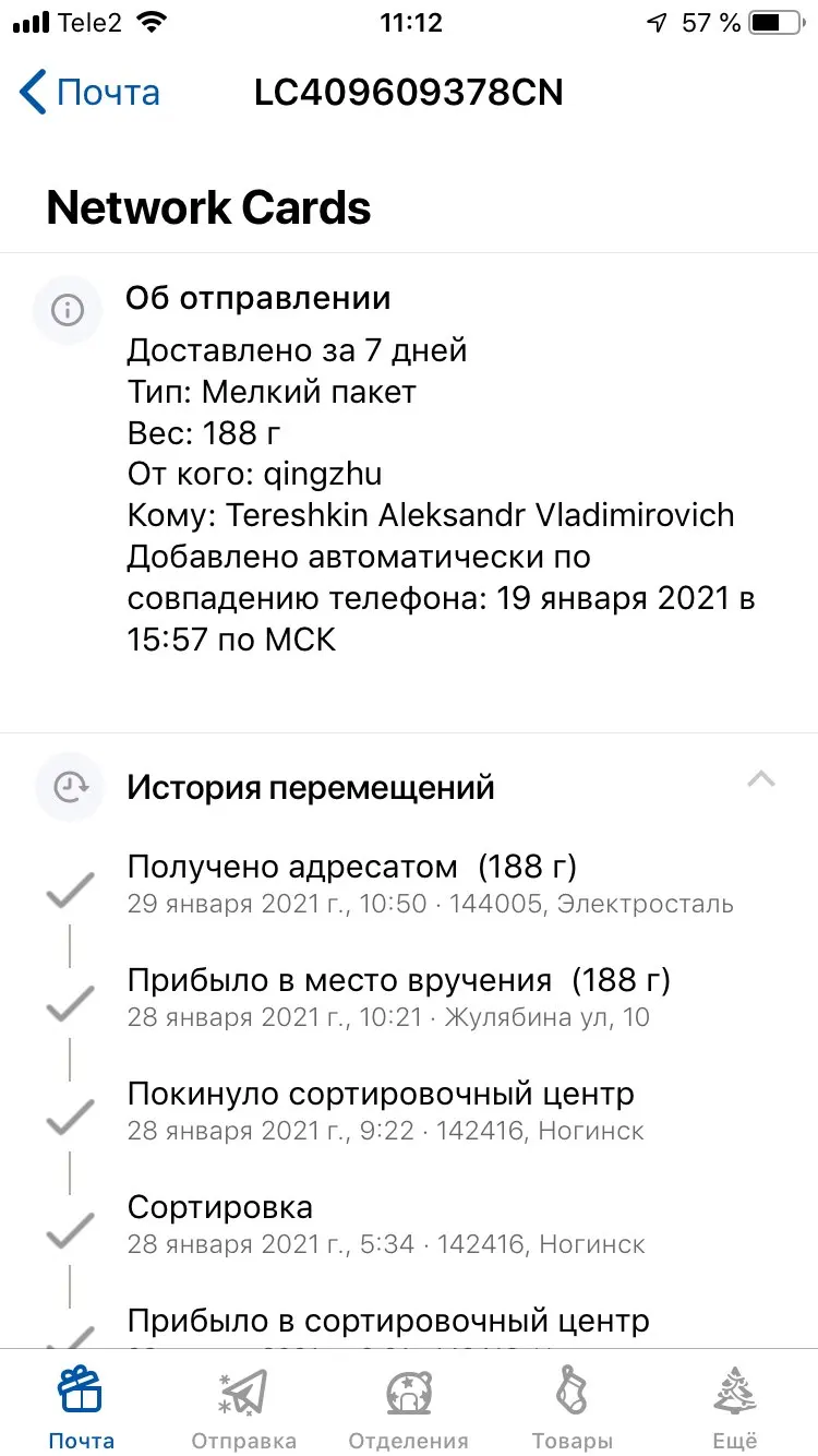 Страна: RU Доставка: Standard Shipping 04.01.2021