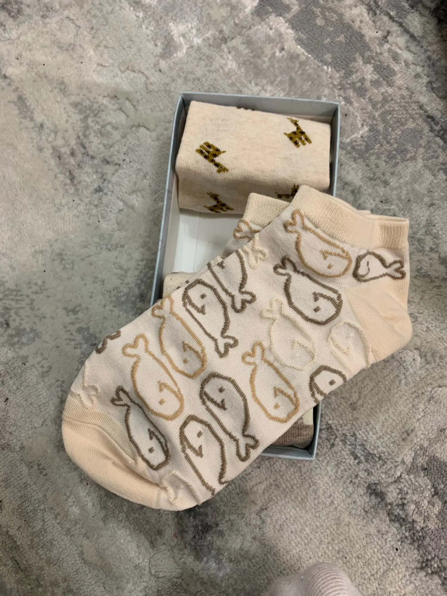 Носки очень милые. Упаковка подарочная тоже милая. Возможно даже подарю в качестве подарка.