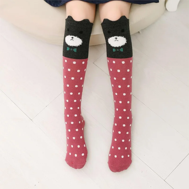 Новый дизайн, Хлопковые гольфы с рисунком для девочек, носки средне...