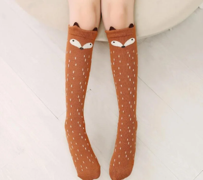 С принтом животных длинные носки до колена с рисунком лисы для маленьких девочек; Платье из хлопка Детские носки Симпатичные носки для малышей, аксессуары для одежды