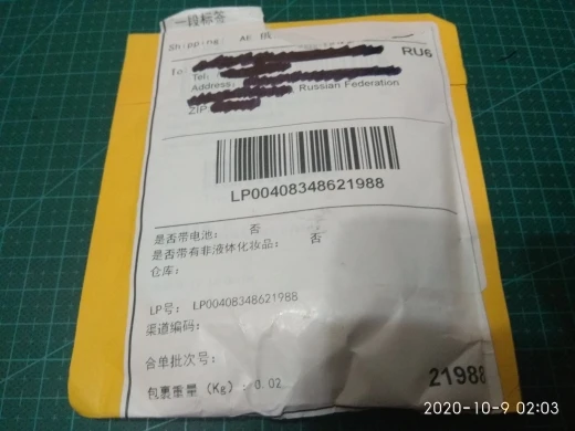 Страна: RU Color: Original module Доставка: Cainiao Super Economy 28.09.2020