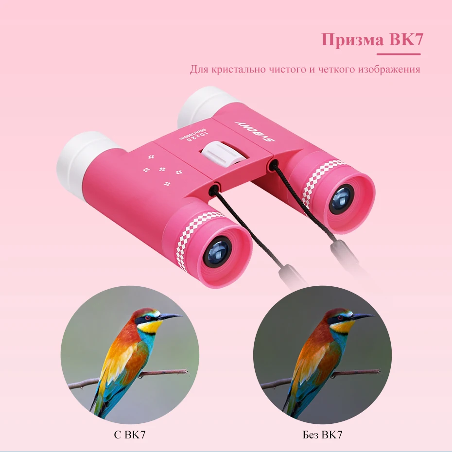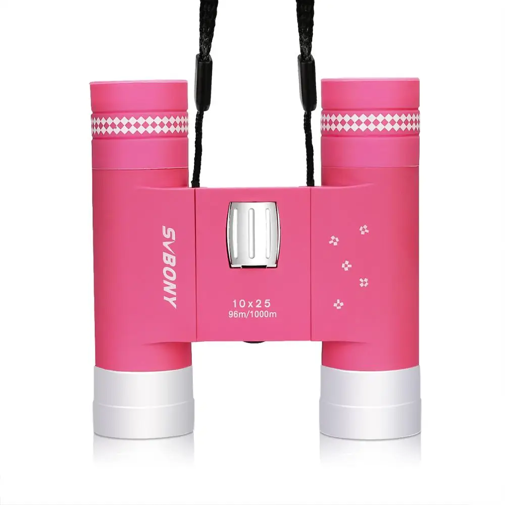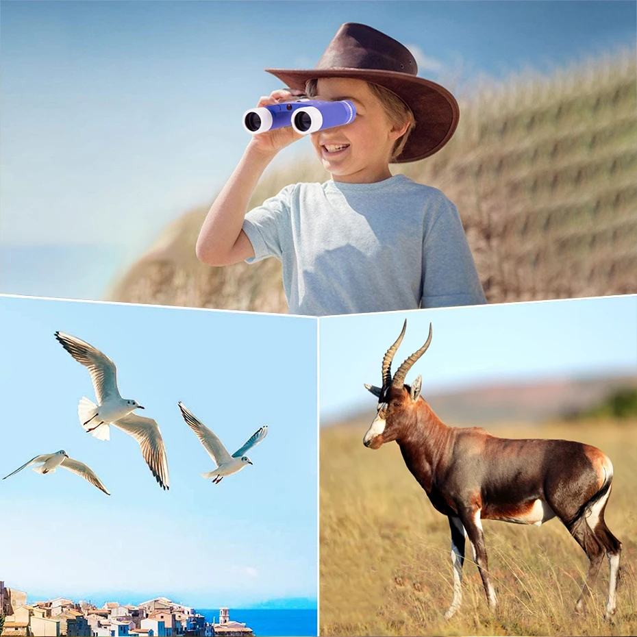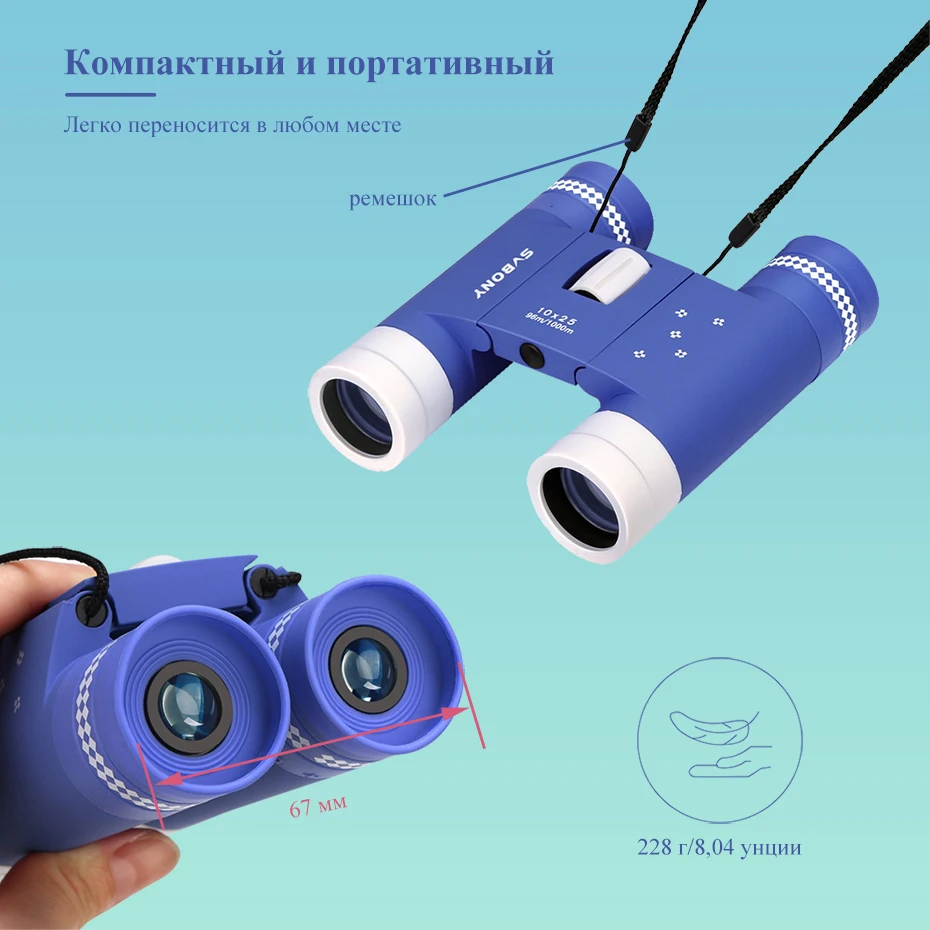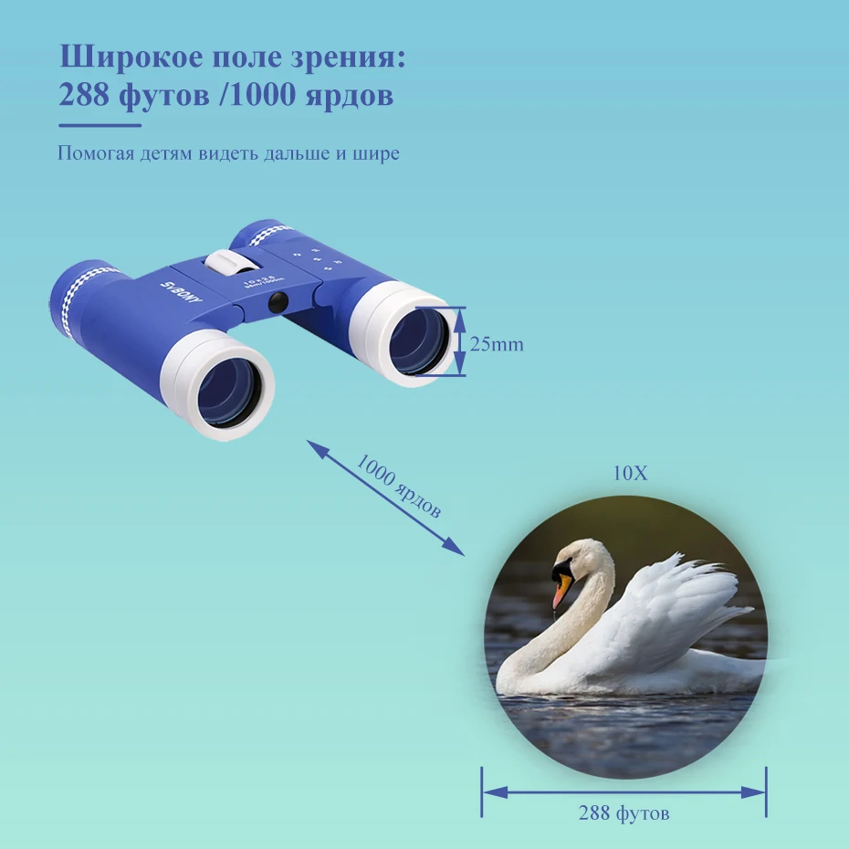 Бинокль 10X25, 10-кратное увеличение и объектив 25 мм обеспечивают широкое поле зрения: 288 футов на расстоянии 1000 ярдов, помогая детям видеть дальше и шире. Настоящий оптический бинокль полезен для детских глаз и вызывает меньшее напряжение глаз.