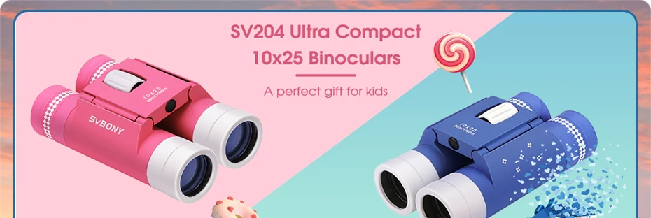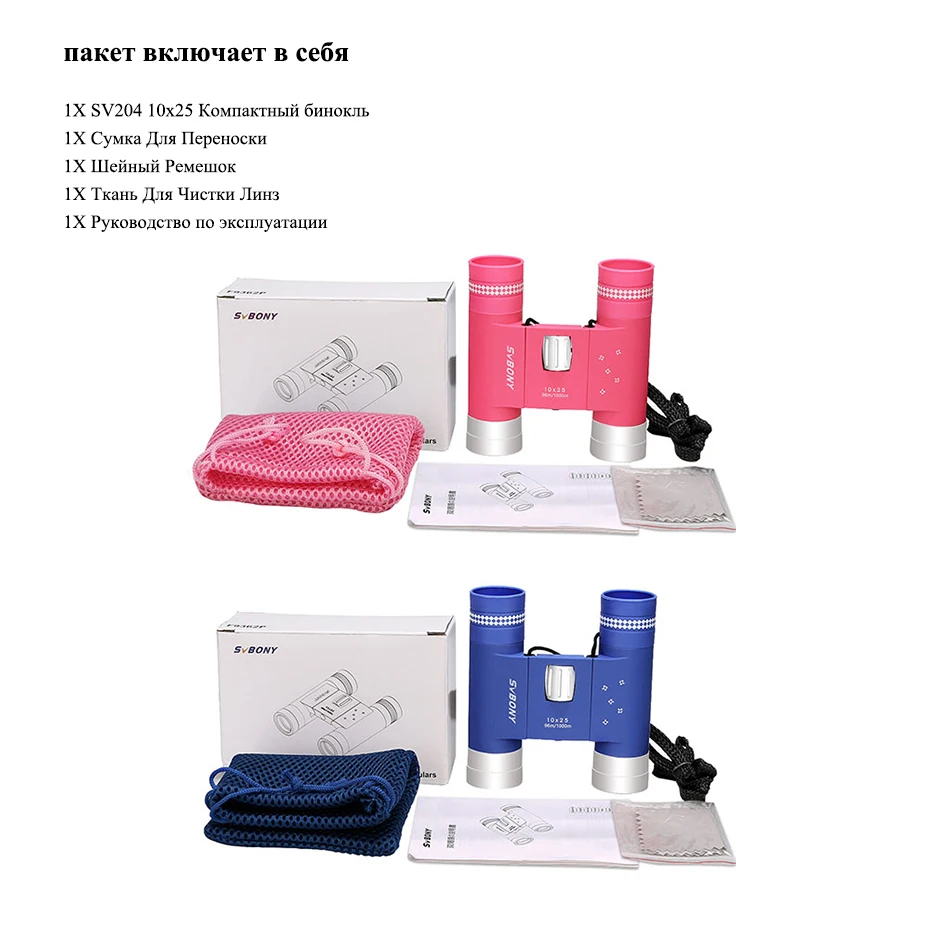 Компактный бинокль SV204 10x25Сумка для переноскиШейный ремешокСалфетка для очистки линзРуководство по эксплуатации