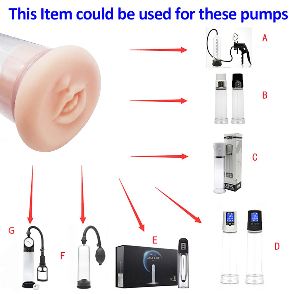 Крышка для рта/полости рта электрического насоса для пениса (Силиконовое уплотнение)Рукав для рта/орального пончика, который добавляет более гладкие и приятные ощущения в накачиваниеПомогает поддерживать эрекцию при использовании как кольцо для сужения после накачиванияРастягивается для большинства размеров