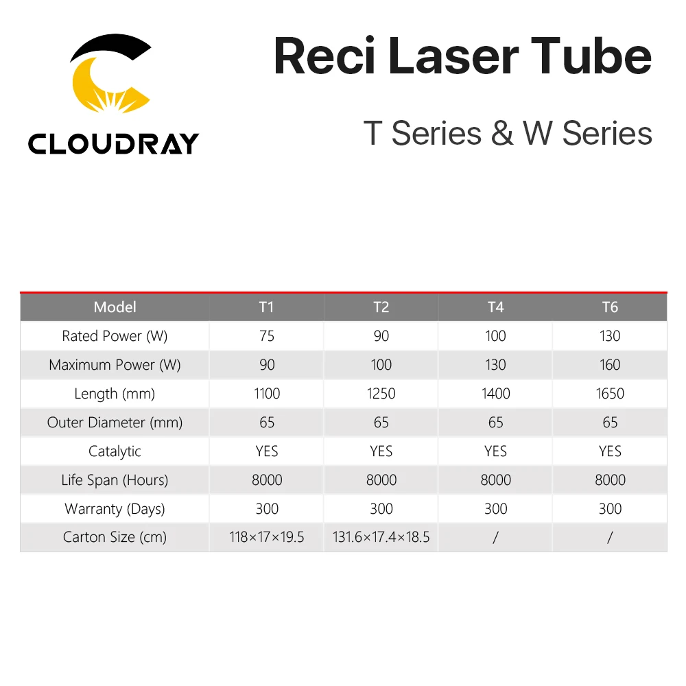 Cloudray Reci W1T1 75 Вт-90 Вт CO2 лазерная трубка Деревянный чехол коробка упаковка диаметр 80 мм65 мм для лазерного гравировального станка CO2