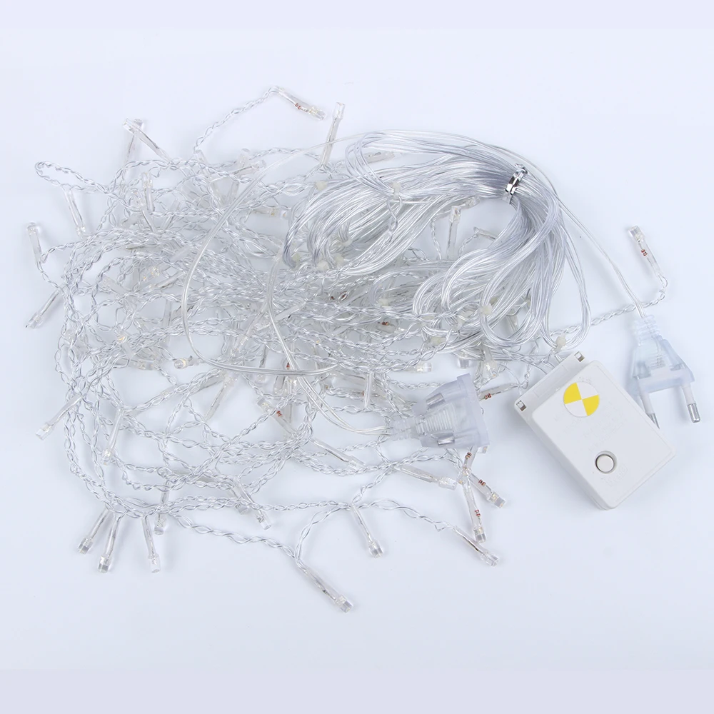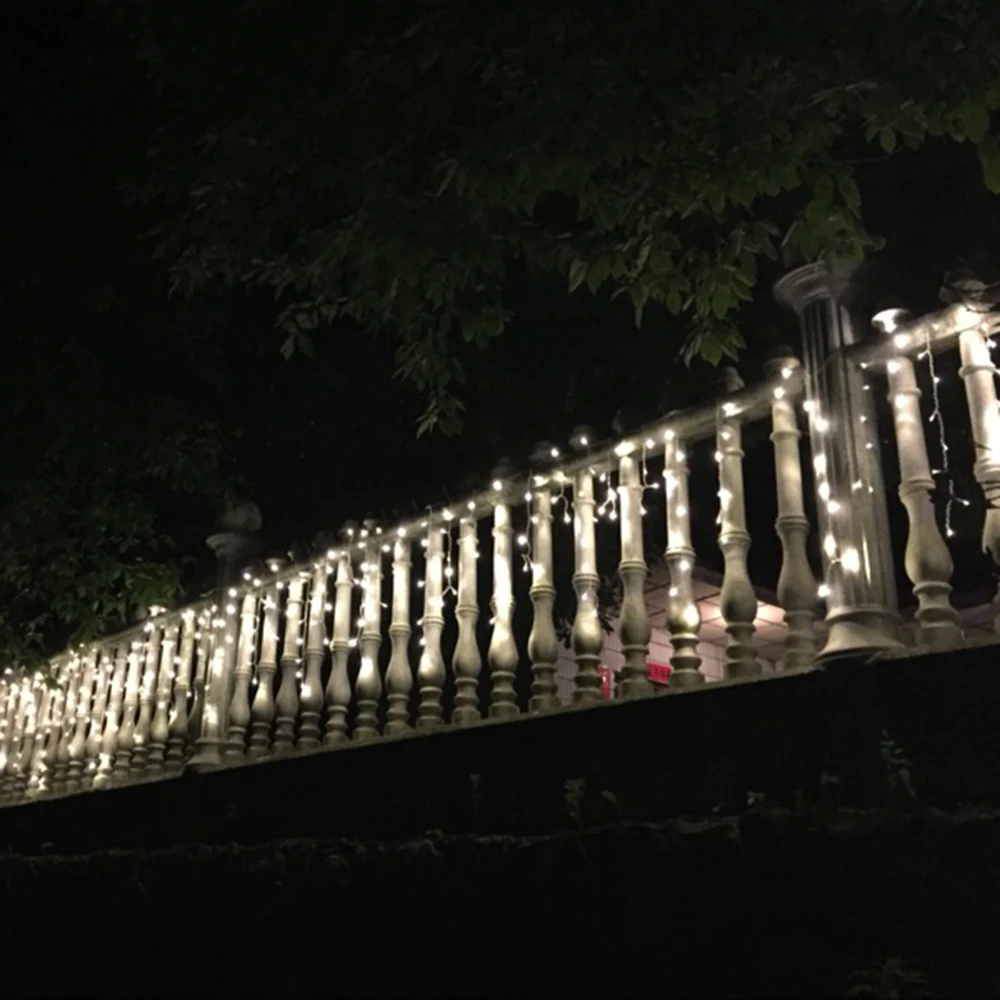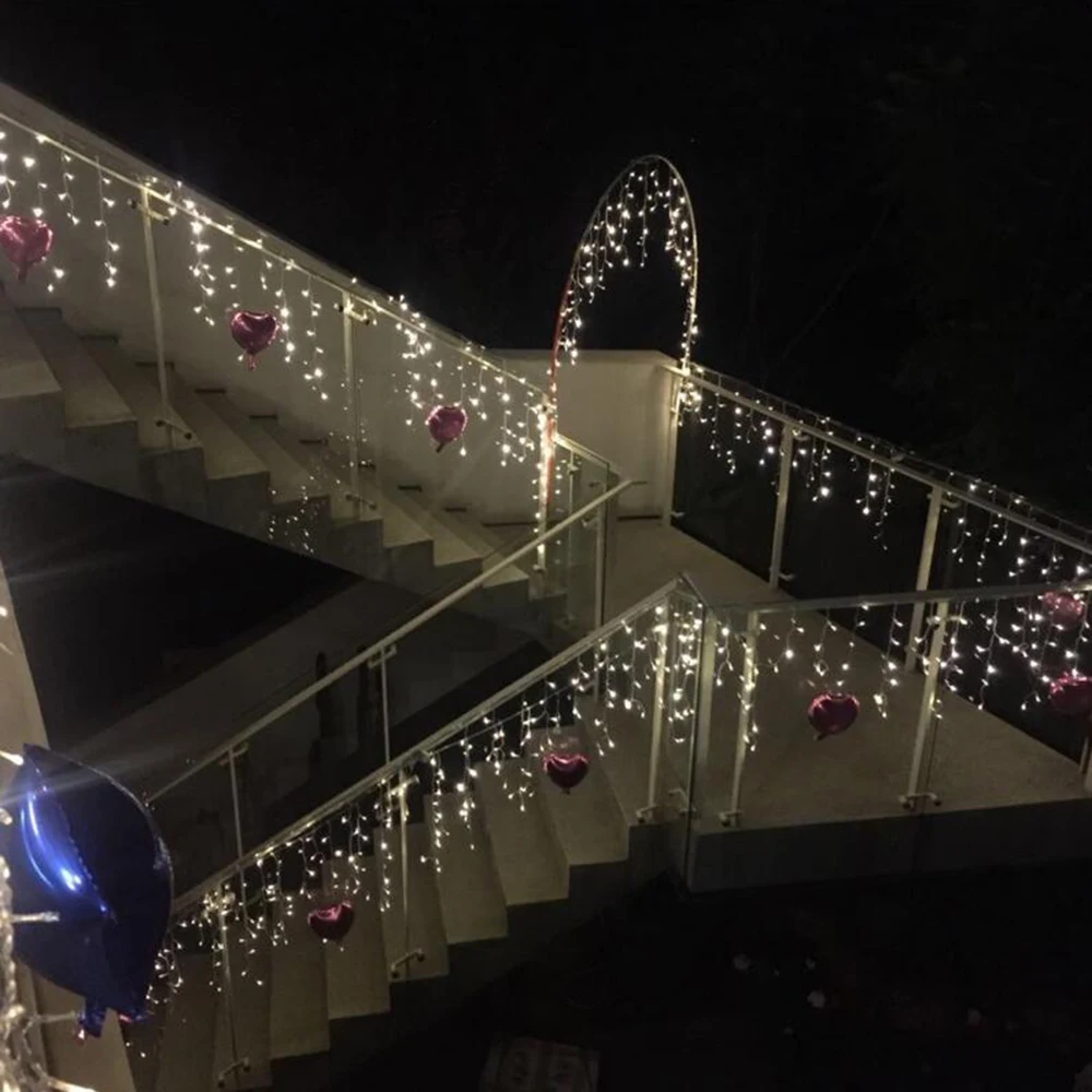 Не так часто весят как на картинке. 15 см между висящими вниз гирляндами. Хотелось бы чаще. Все работает.