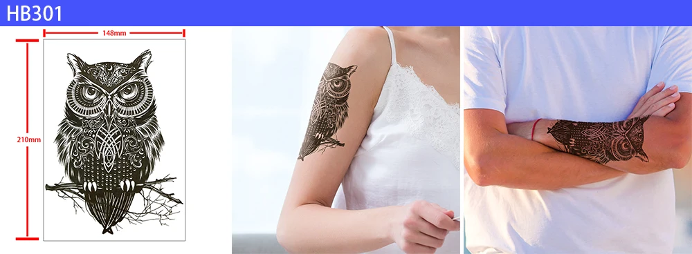 Водостойкая временная татуировка-наклейка, искусственная, для женщин и мужчин, волк, Череп, Орел, черный дракон, Сова, Красивое боди-арт, Сексуальный макияж