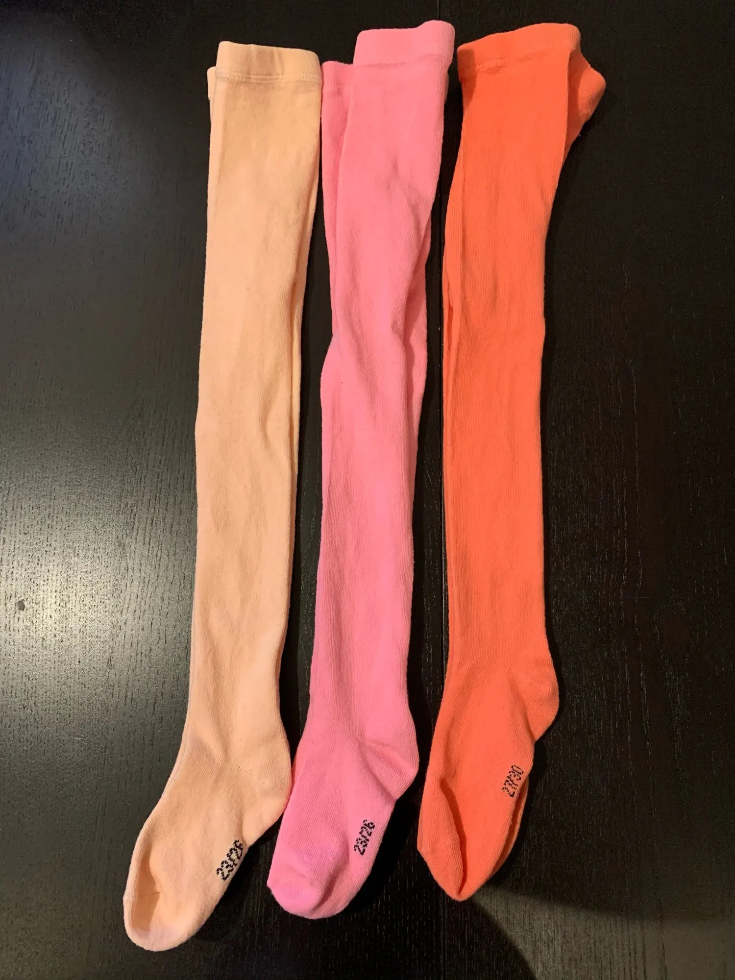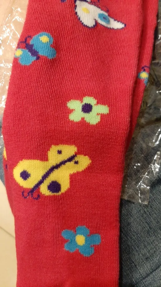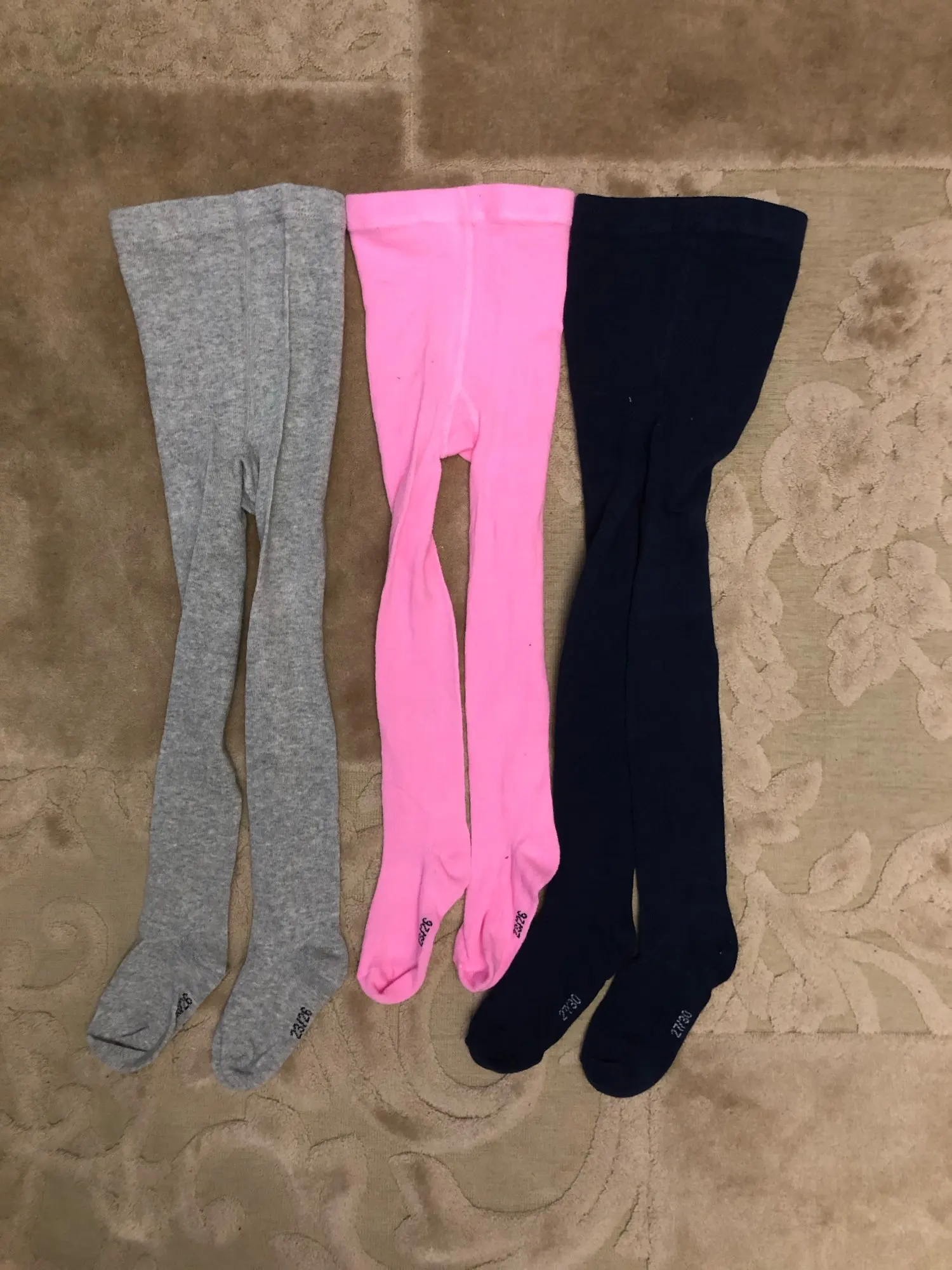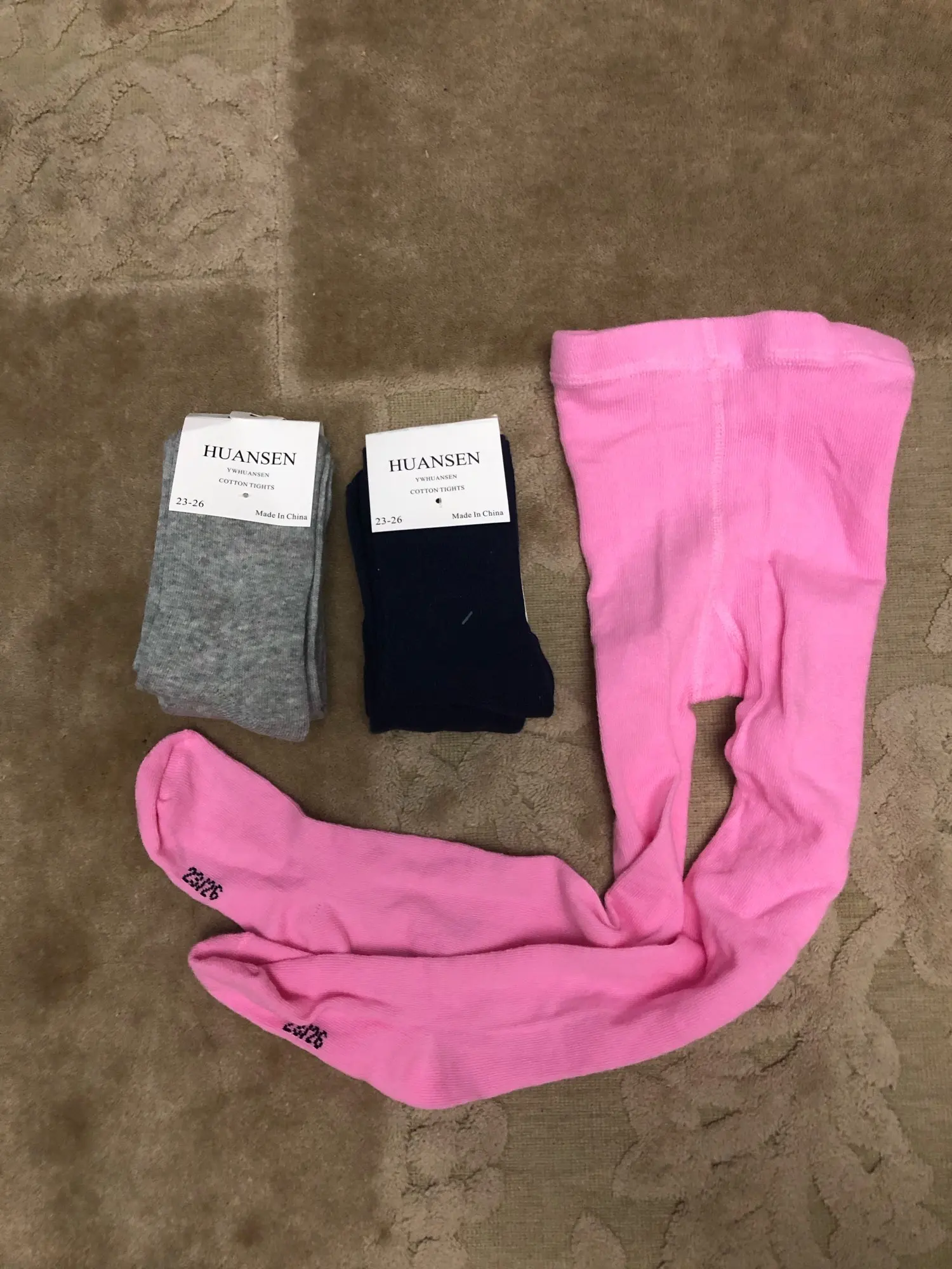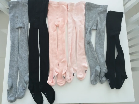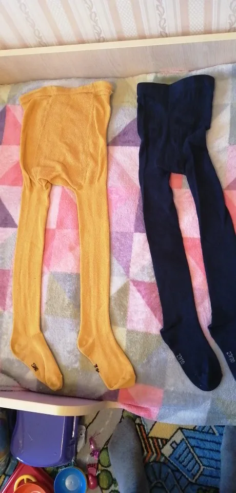 Заказала 3 пары колготок для дочки. Размер М. Качество хорошее. На розовых была маленькая дырочка. Размер на упаковке написан 23-26. На розовых и серых колготках на стопе тоже написано 23-26. А на синих 27-30. Ну и по фото видно, какой длины все колготки. Главное, что колготки не маленькие на дочь, а синие так и большие. Рост у дочки 94 см.