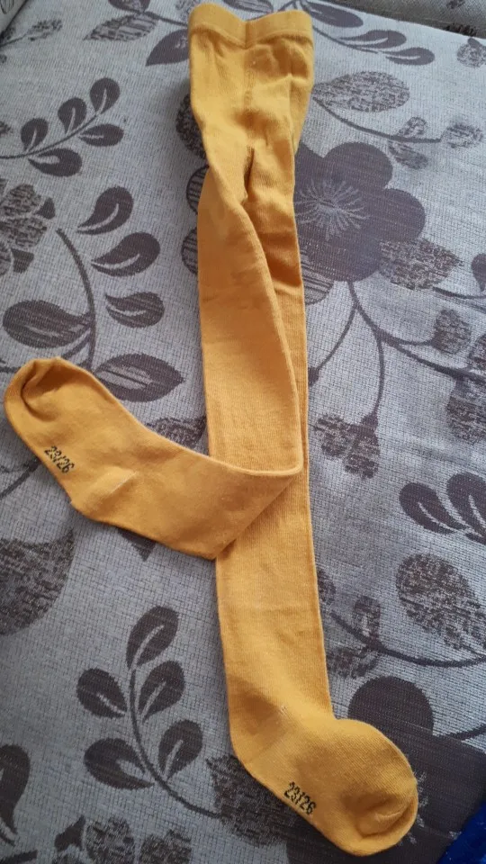 Кологотки хорошие, цена на распродаже была 1$, за такую цену отлично. Дочка ростом 81 см носит такие же в размере S, а эти взяла на вырост. Думаю, что подойдут деткам на рост 92-98 см где-то.