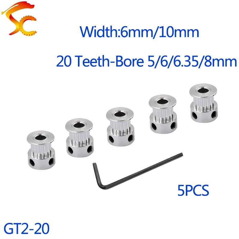 5 шт.GT 20 зубьев 2GT 2M зубчатый шкив5/6/6.35/8 ммДля