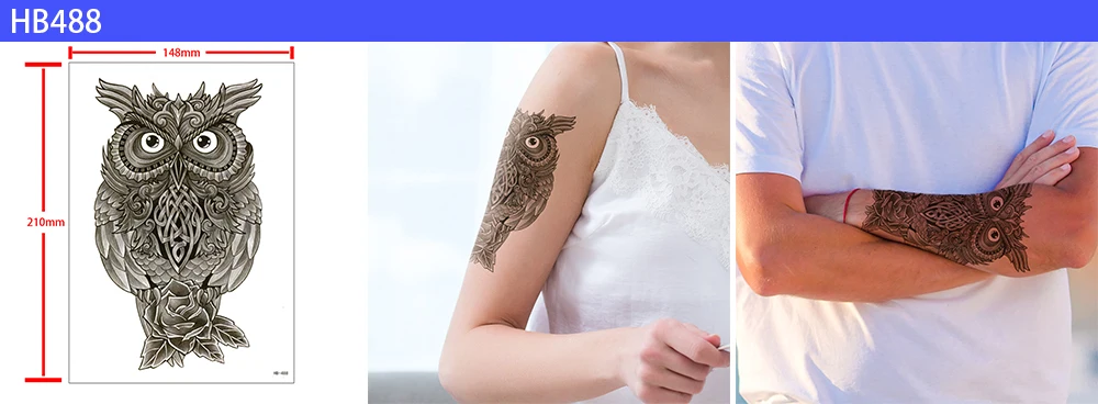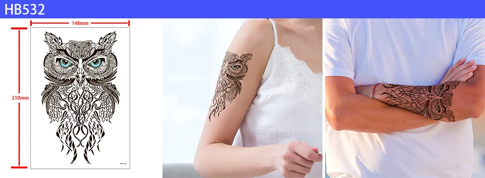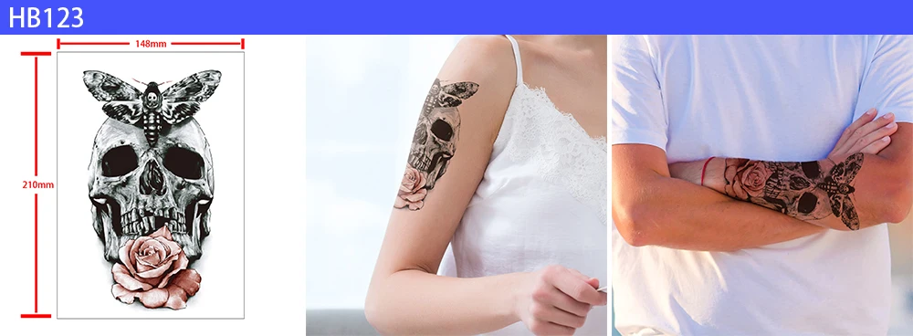 Водонепроницаемая временная тату-наклейка с искусственным переносом воды, цветочная рука для женщин, мужчин, черепа, совы, бабочки, красоты, боди-арта, сексуального макияжа