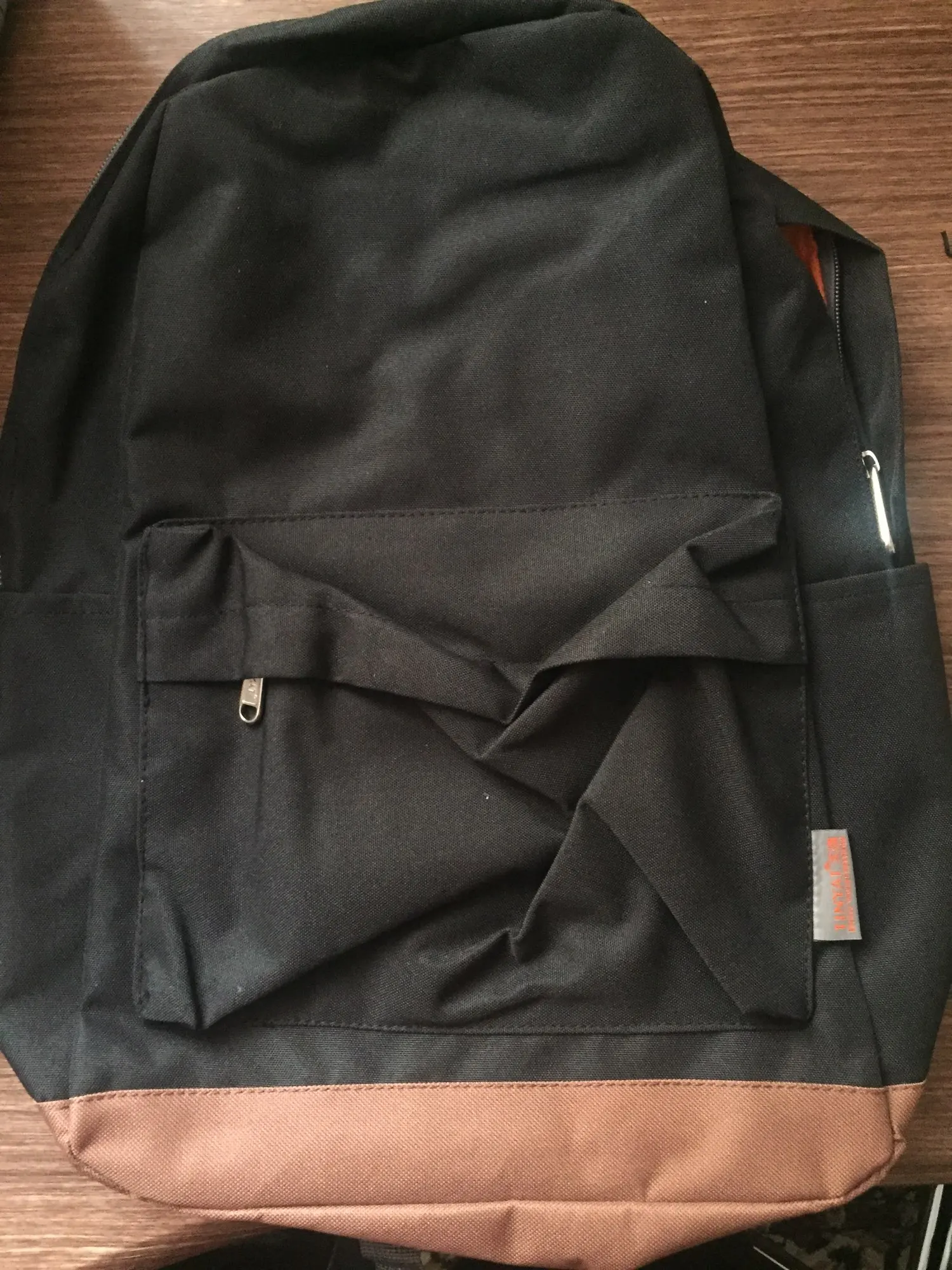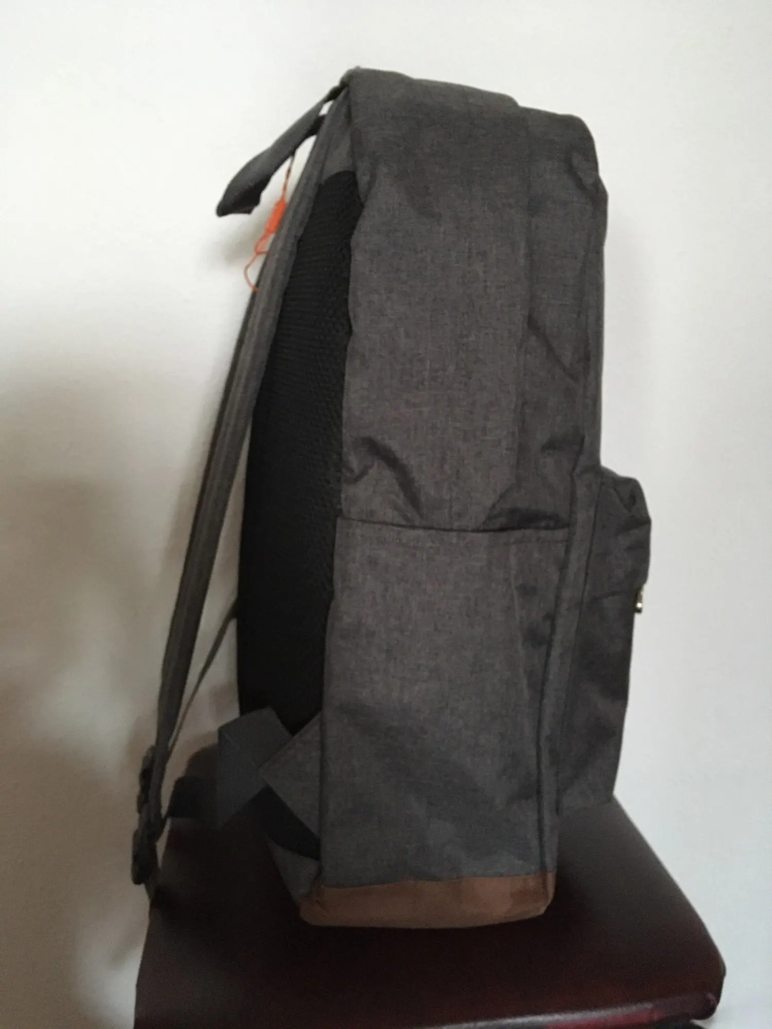 Идеальный размер для 14-дюймового ноутбука. Швы выглядят хорошо. Ручки для подвешивания сзади немного тонкие, но в целом хорошие. В основном кармане есть несколько отсеков и небольшая коробка. По бокам у него есть карманы без застежки-молнии, возможно, для бутылок с водой или шарфов. И посмотрим, как долго это продлится, но выглядит хорошо