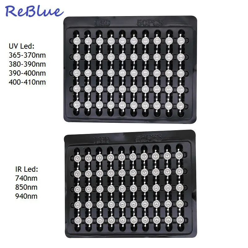 Светодиодные чипы ReBlue 3 Вт, 50 шт., ИК-диоды 850 нм, 740 нм, 940 нм, УФ, 390 нм, 410 нм, высокая мощность, 850 нм, инфракрасные светодиодные ИК-УФ чипы, светильник вые шарики