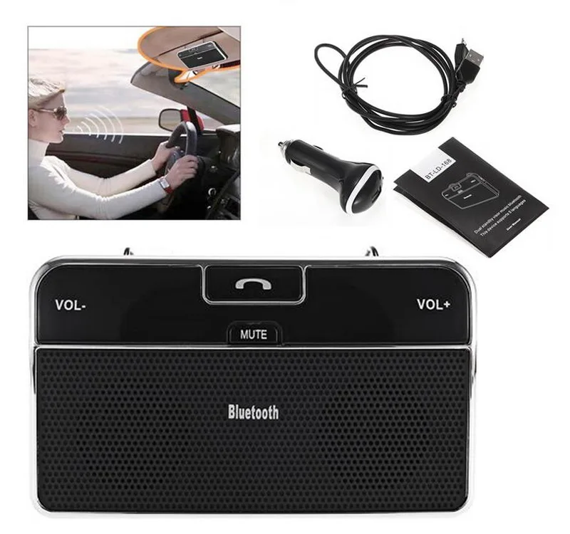 Универсальный Bluetooth 4,0 EDR в автомобиле спикерфон солнцезащитный козырек беспроводной автомобильный комплект громкой связи музыкальный приемник + Автомобильное зарядное устройство