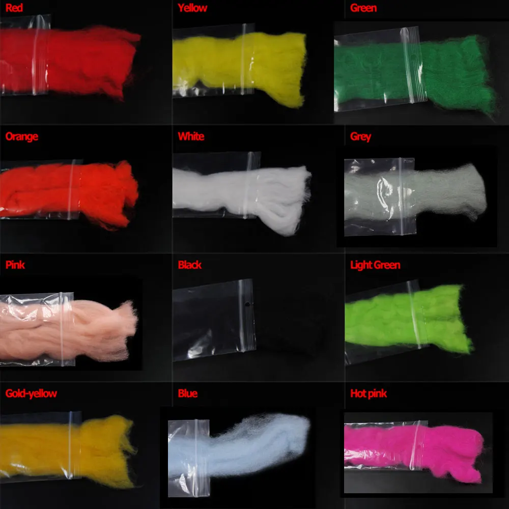 Разноцветная пряжа для вязания мушек, светящаяся пряжа для нашейников, приманка для рыбы, парашют, материал для вязания мушек, розовый, желтый, оранжевый, черный цвет