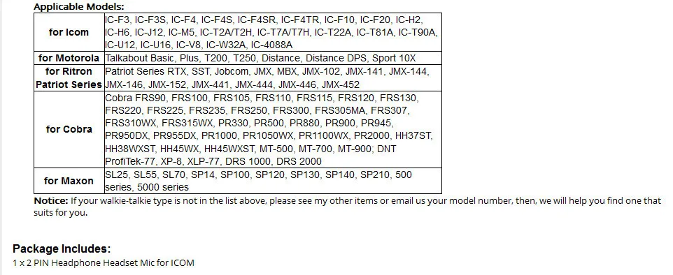 2-контактный интерфейс для ICOM ICV80 /V8/V82 воздуховодов наушников