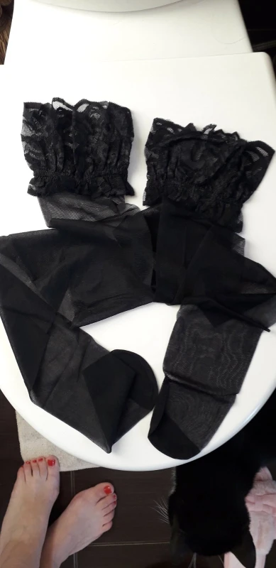 Чулки на тонкие ноги, без силиконовых резинок, поэтому быстро сползают и давят. Для ролевых игр на 10 минут пойдут, носить в повседневке невозможно