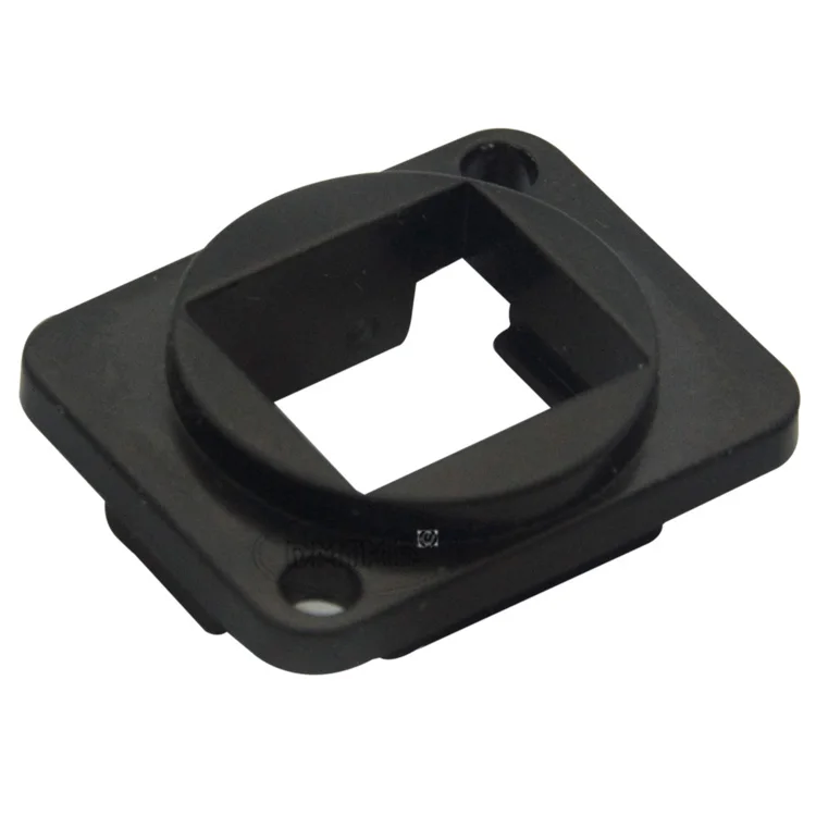 Отверстие для брелока разработано неправильно, поэтому вы не можете вставить модули Keystone без значительной модификации с помощью Dremel. Верхняя часть слота должна быть скошена, чтобы модуль мог скользить и поддерживать определенные модули keystone.