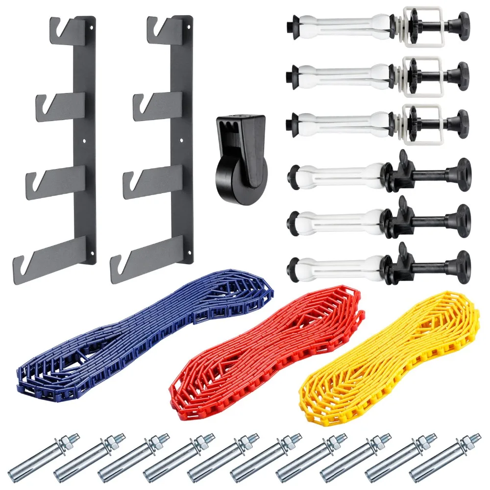 Ручная система поддержки фона Neewer Photography с 4 роликами для настенного монтажа, включая два (2) четырехстворчатых крючка, шесть (6) расширяющихся стержней, четыре (4) цепи, десять (10) зажимных болтов.