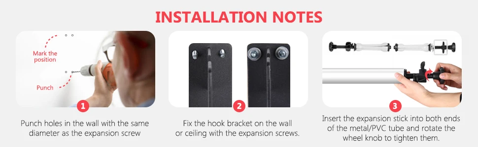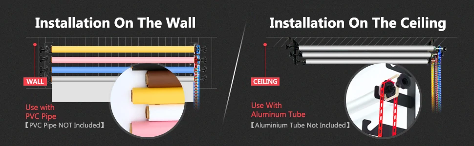 Инструкция по сборке и эксплуатации в комплекте. Очень легко устанавливается на стену или потолок вашей студии. Экономично и удобно. Использование с ПВХ или алюминиевой трубкой (не входит в комплект)