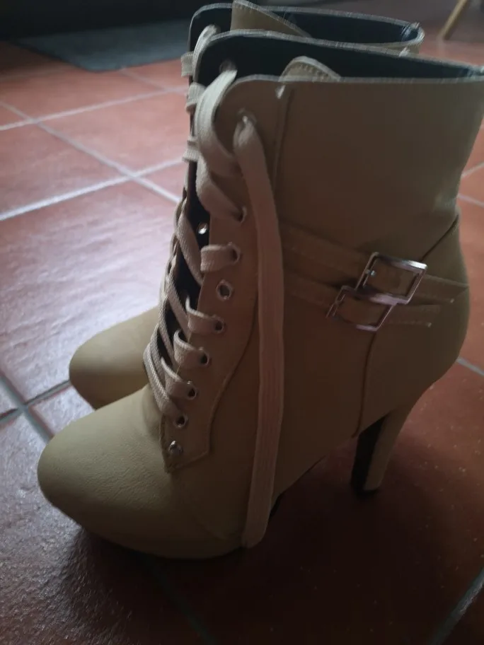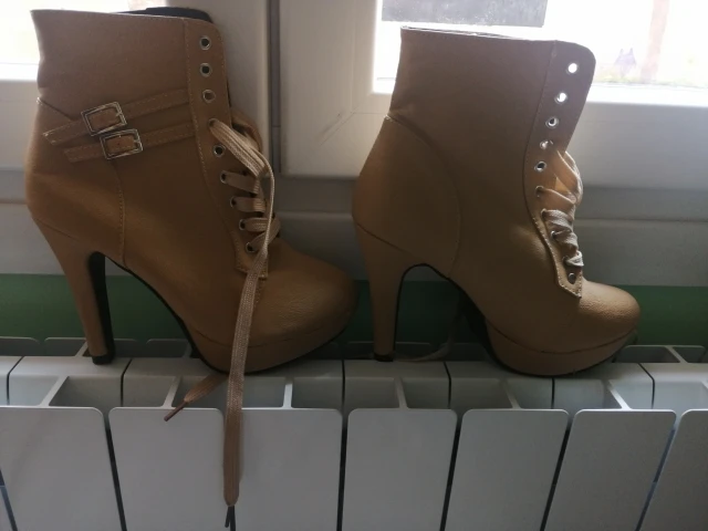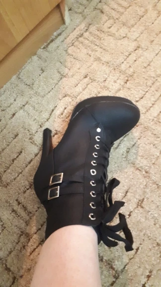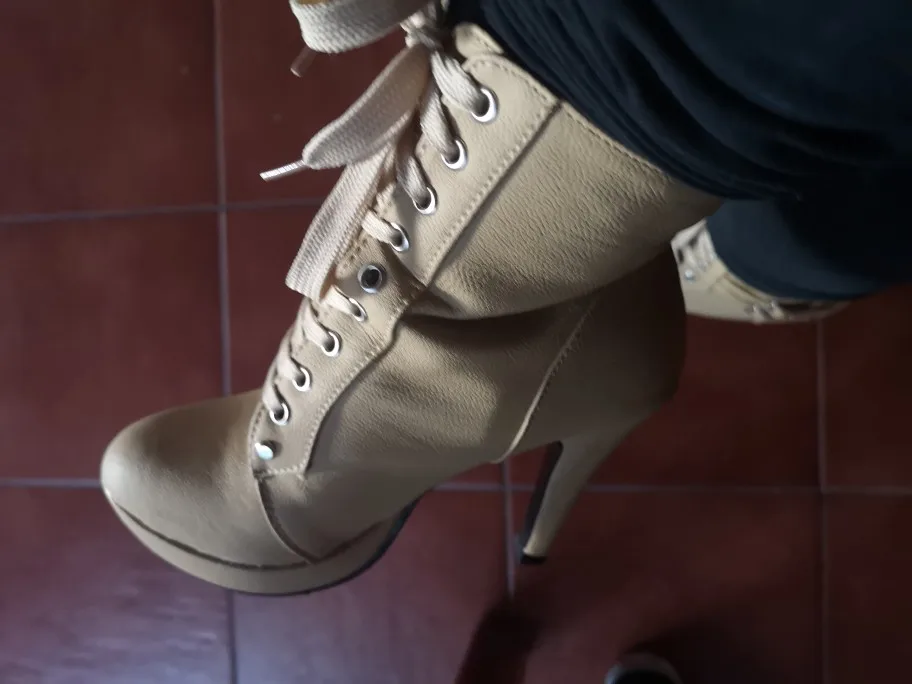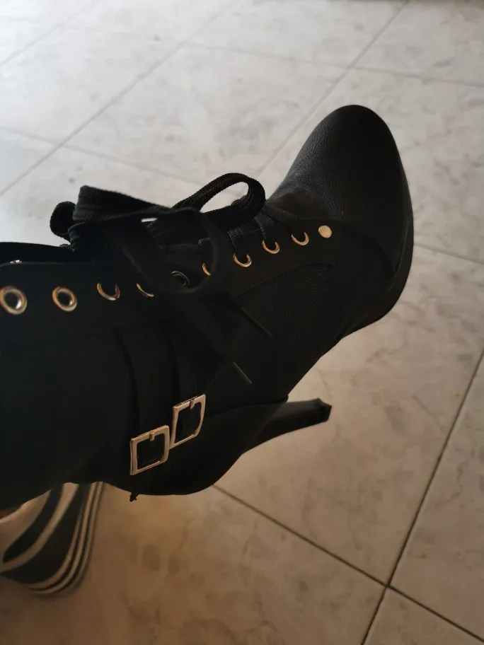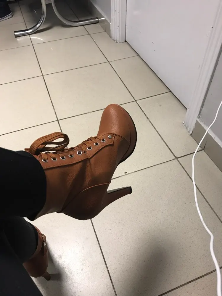 Очень красивые ботинки, размер слишком маленький, я закажу на размер больше. Очень хорошее качество, удобная обувь. Каблук выглядит одноцветной, сделан из очень приятной стопы! Быстрая доставка, я рекомендую.