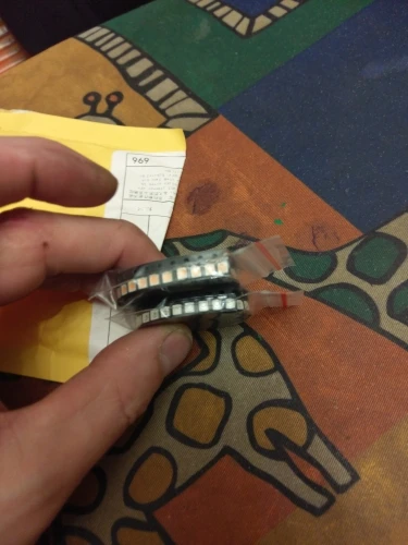 Товар получил своевременно. 100 шт светодиодов RGB на одной ленте, каждый в отдельном кармашке. Рассчитывал, что светодиоды будут как-то припаяны между собой, но увы. Даже не знаю, что с ними делать. Опыта пайки таких мизерных светодиодов нет. Конечно, продавец не виноват, это мой выбор