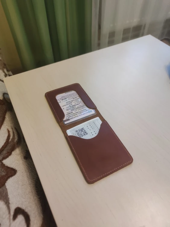 Пришло быстро, за 2недели пришло, очень классный для прав, из натуральной кожи.