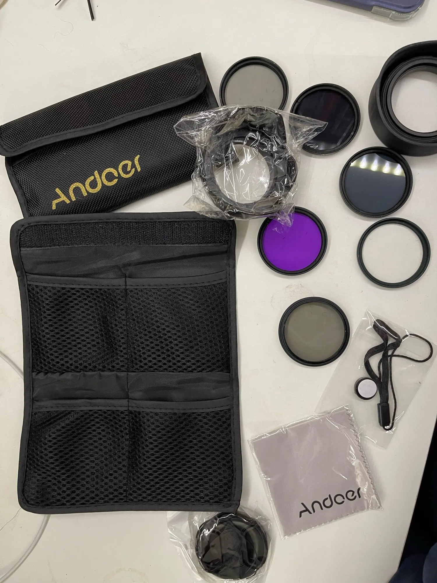 В Комплект фильтров входят 6 фильтров: UV,CPL,FLD, ND2,ND4 и ND8. Эти фильтры разных типов дадут вам возможность для фотосъемки.Особенности:-- Комплект фильтровУФ-фильтр: обеспечивает основное уменьшение ультрафиолетового светильник.Фильтр CPL: удаляет нежелательные отражения от неметаллических поверхностей, таких как стекло или вода.FLD фильтр: обеспечивает коррекцию цвета при съемке при флуоресцентном освещении.ND фильтр: различный уровень ND2/ND4/ND8, применяя медленную скорость затвора под сильным воздействием солнечного света, Большая диафрагма доступна для создания глубины поля легко.-- Другие аксессуары:Чехол для переноски: Используйте для защиты этих фильтров.Крышка объектива: защелкивающаяся конструкция, защищает объектив от царапин, прост в использовании.Держатель крышки: больше не беспокойтесь о потере крышки объектива.Бленда объектива тюльпана: надежно защищает объектив и уменьшает вспышку.Резиновая бленда объектива: складная конструкция с прочной резиной.Ткань для очистки: изготовлена из мягкого волокна.Характеристики:Бренд: AndoerМатериал: УФ/CPL-оптическое стекло и алюминиевый сплавFLD/ND-оптическая Смола и алюминиевый сплавСовместимость: для объектива 49 ммРазмер посылка: 22*12*7 см/8,7*4,7*2,8 дюймовПосылка Вес: 238g/8,4 ozПримечание:Камера в комплект не входит.