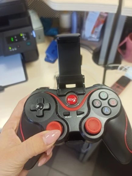 Отличный гейпад, не скрипит, кнопки, курки, джойстики все работает четко. По блютуз соединился на ура, ну и в комплекте пипка в усб на всякий случай. Крепеж под телефон фиксируется четко, но телефон сидит в нем не очень надежно, снизу нет бортика может выскальзывать... Продавец-красавЕц, доставка до двери за неделю. Ребенок щаслиц