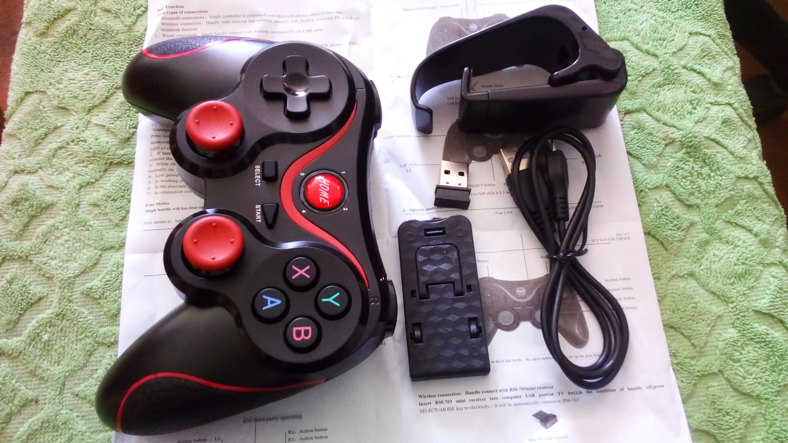 Все окей. качество хорошее. доставка быстрая. упаковка слабовата, всего лишь пакет с пупырками. Были сложности с подключением. так как инструкция на китайском и английском. Напишу тут как подключить, надеюсь вам отзыв будет полезен. Как подключить к Андроид через блютуз: зажать Х + home, далее заморгают индикаторы, после ищем разделе блютуз геймпад (может высветится как клавиатура) и подключаем. Должен засветится индикатор 1, значит гемпад подключен. Нажав Home, переключится на индикатор 2, это режим мышки. Чтобы выключить гемпад зажмите на 5 сек. Подключаем к ПК через ресивер: вставляем ресивер в USB, далее зажимаем SELECT + HOME. После подключения засветится индикатор 2, далее зажимаем SELECT + START, переключается режим 4 и играем ( главное что бы игра поддерживала подключение геймпада)