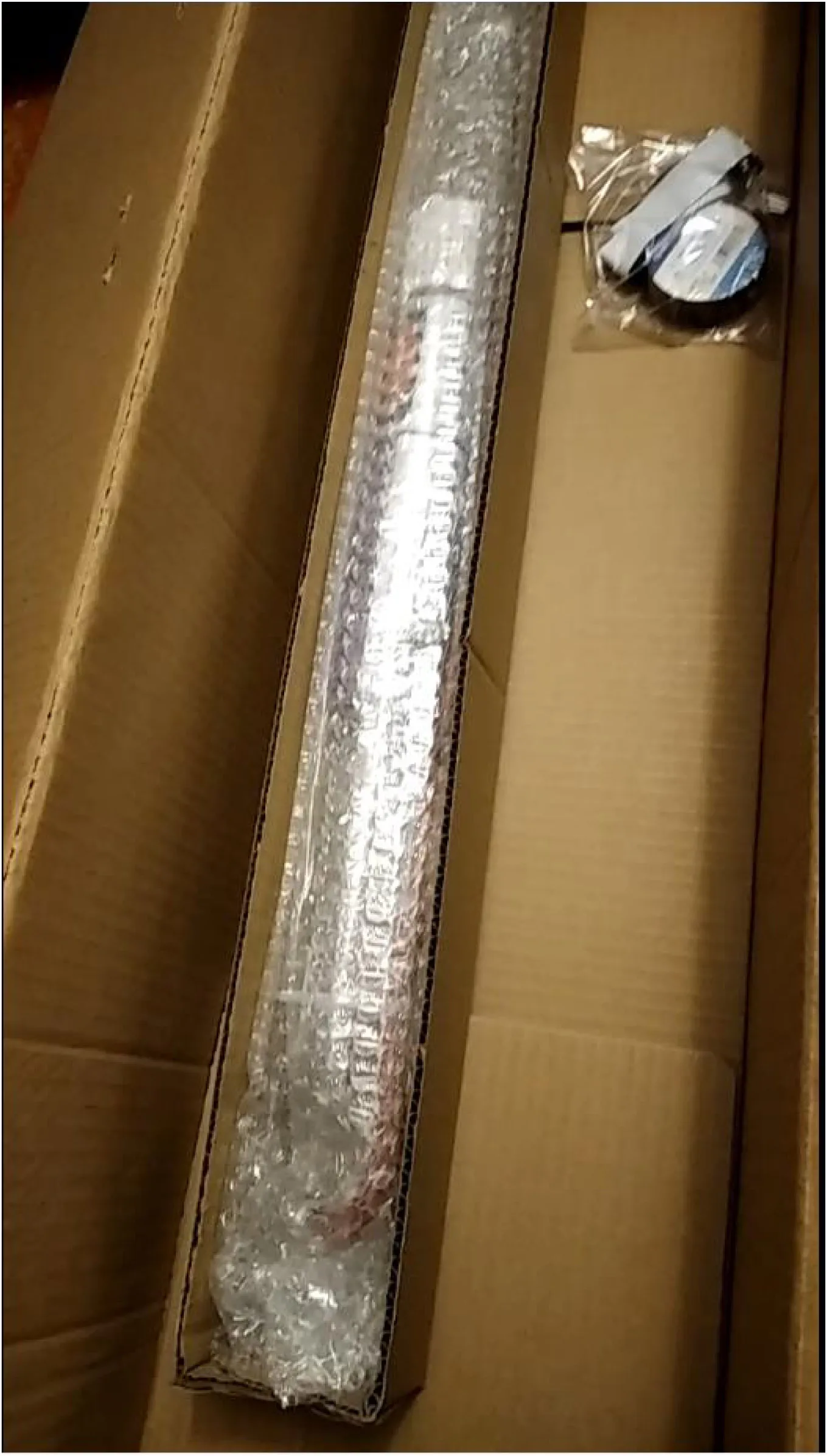 очень доволен, оплатил 19-го, пришла 23-го, на следующий день курьер привез сомневался, что довезут целой, но упаковано хорошо, внешняя картонная коробка (угол немного был помят), потом через слой поролона внутренняя картонная коробка, внутри в пупырчатой пленке сама труба труба без признаков повреждения, подключали к воде, включали в сеть, все работает