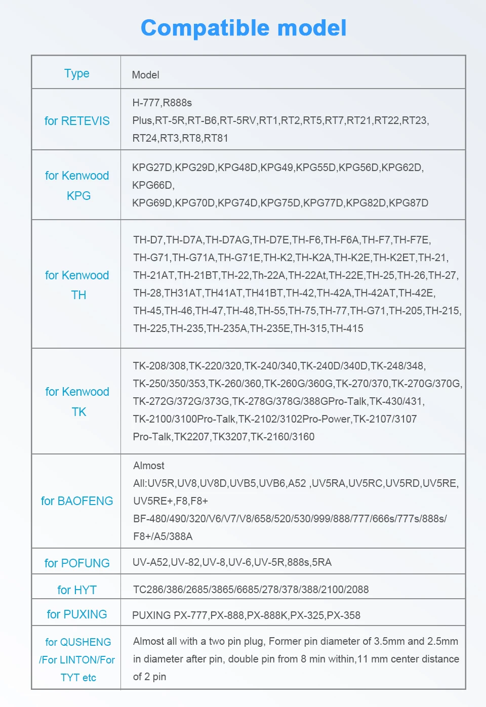 Гарнитура с микрофоном для трансивера Kenwood TYT Baofeng UV 5R UV-82 Retevis H777 RT-5R RT22 RT3 RT81, 2 шт.