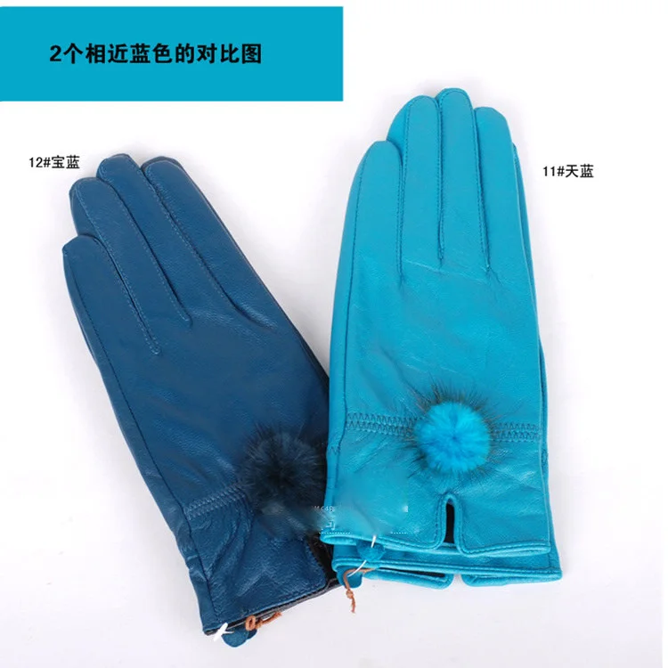 Перчатки из 2021 натуральной кожи Harppihop, женские перчатки из овечьей кожи, женские тонкие теплые модные шарики из норки