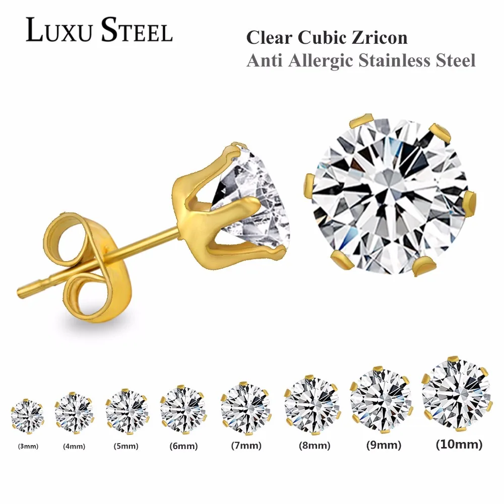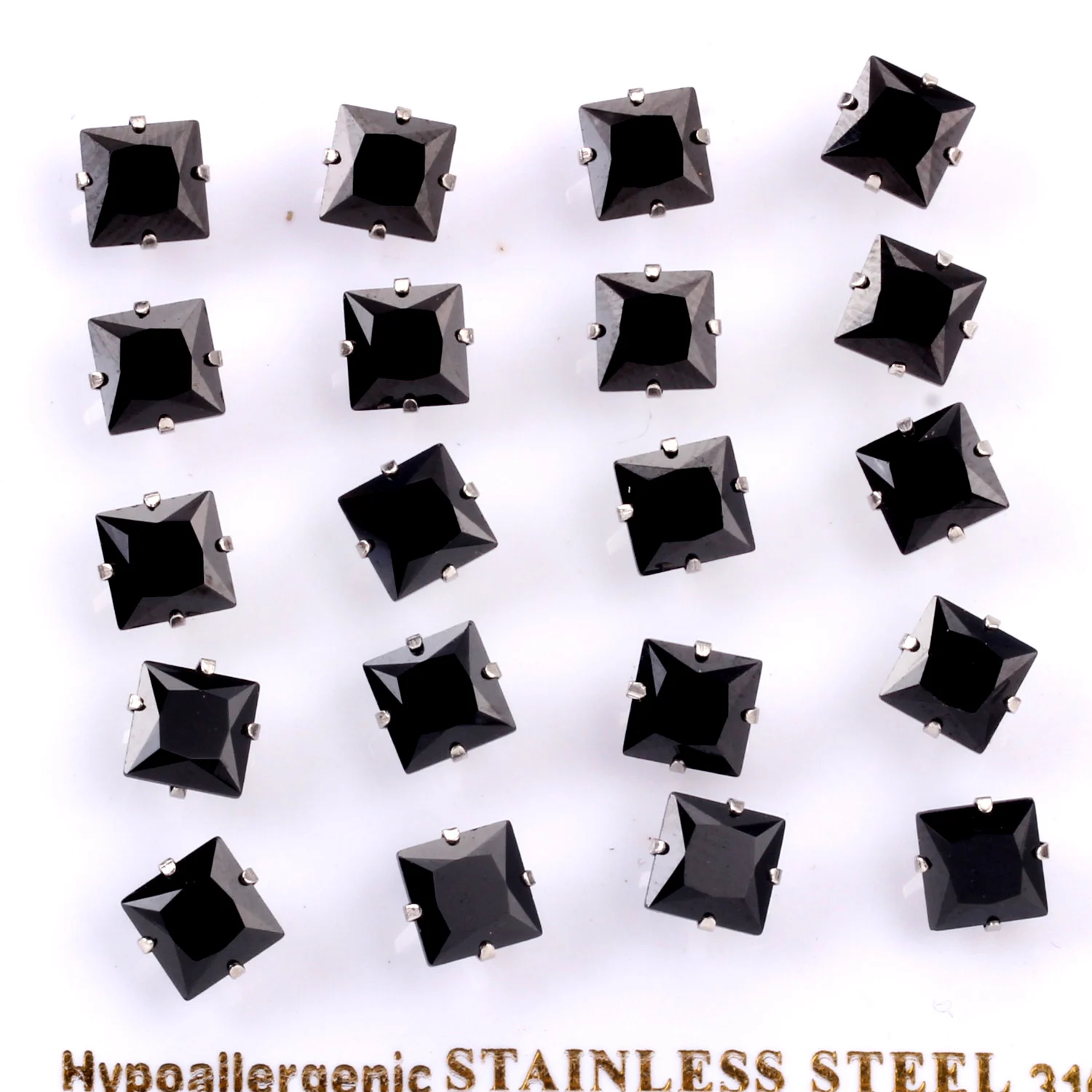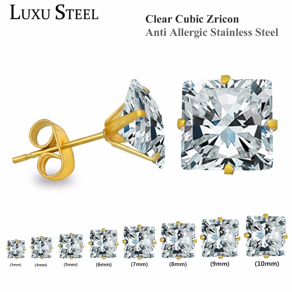 Комплект сережек-гвоздиков LUXU из нержавеющей стали 316L, 10 паркарта, разные цвета, круглыеквадратные, с блестящим кубическим цирконием