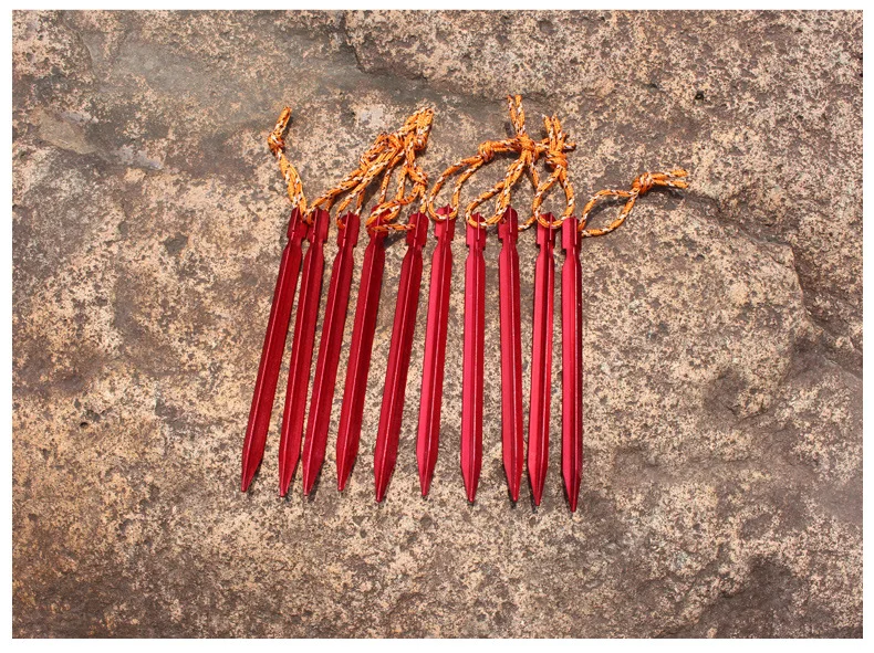 Прочный Размер подходит для большинства палаточных стоек Тип товара: аксессуары для палатки Лучшее Применение: кемпинг Цвет: красный, черный, желтый, серебристый Посылка 10 шт. колышки для палатки