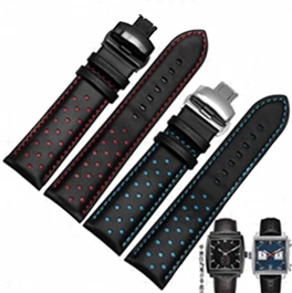 Ремешок из натуральной воловьей кожи для наручных часов, черный красный синий браслет ручной работы с двойным толчком, с застежкой-молнией, 20 мм 22 мм