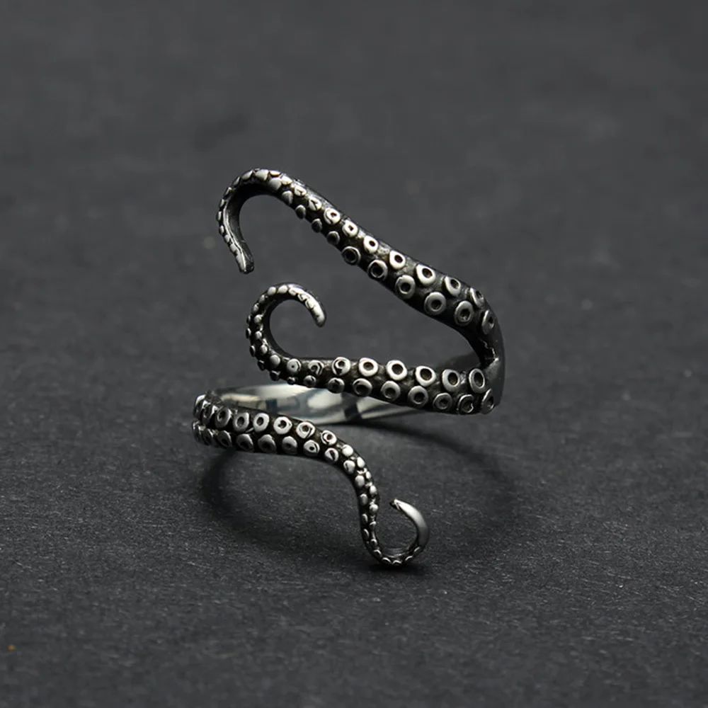 Кольцо TIGRADE регулируемое из нержавеющей стали для мужчин и женщин, открытое винтажное Ювелирное Украшение в готическом стиле, с изображением кальмара и осьминога