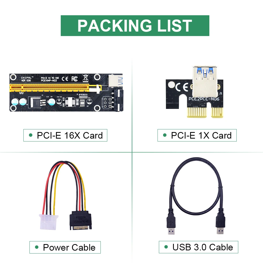 Переходная плата CHIPAL VER006S PCI-E, 60 см, 100 см, кабель USB 3,0, Удлинительный адаптер PCIE 1X на 16X, SATA, 4-контактный разъем питания для видеокарты