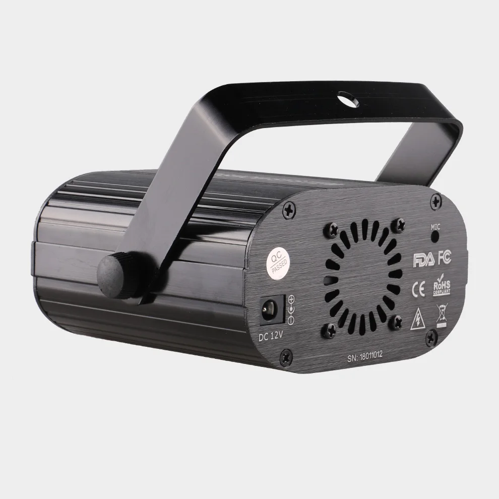 Лазерный свет x 1; ИК-пульт дистанционного управления × 1 (в комплект не входит батарейка CR2025 3V); Блок питания × 1; Кронштейн × 1; Винты × 2; Руководство пользователя (на английском языке) × 1.