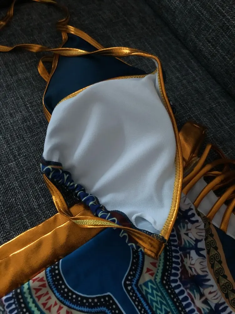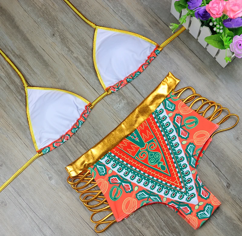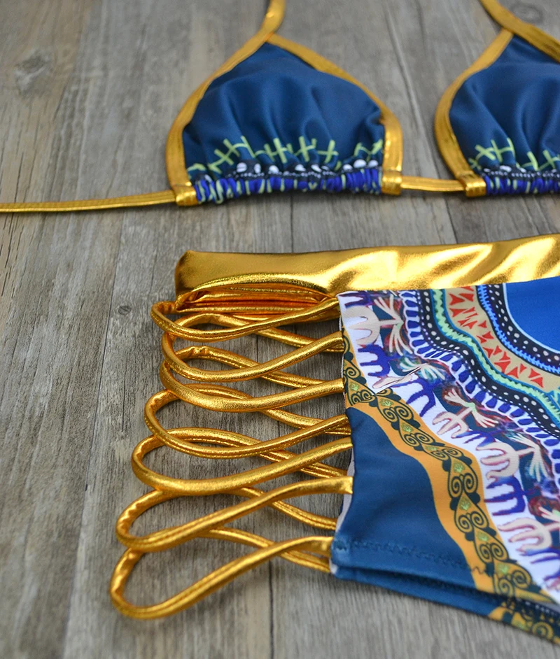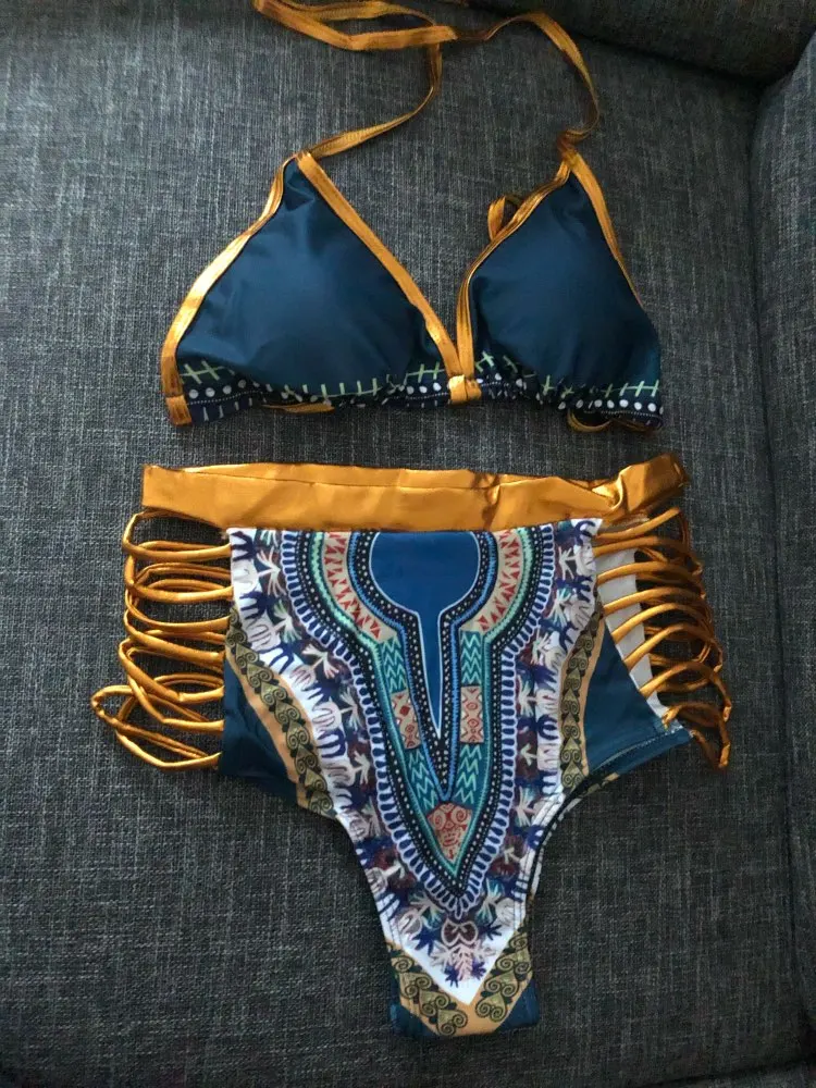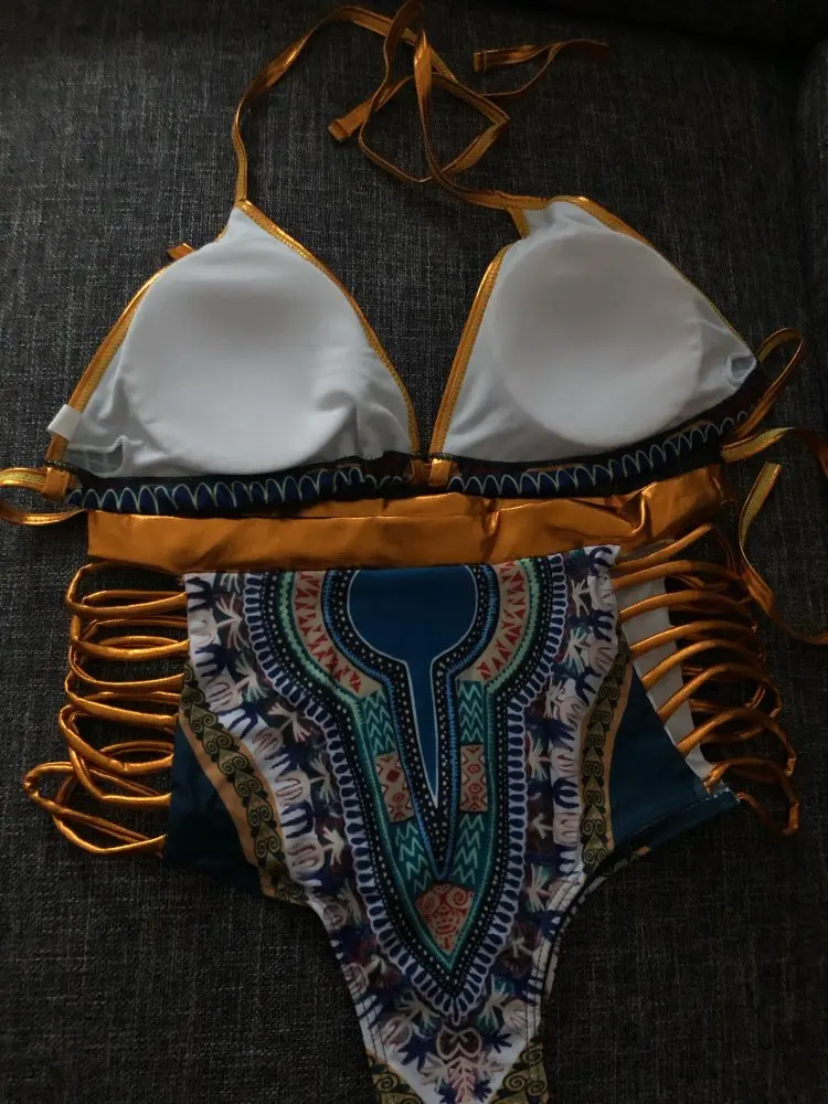 Раздельный купальный костюм с Африканским принтом, комплект бикини, сексуальный геометрический купальник, Золотой купальник с высокой талией, 2022